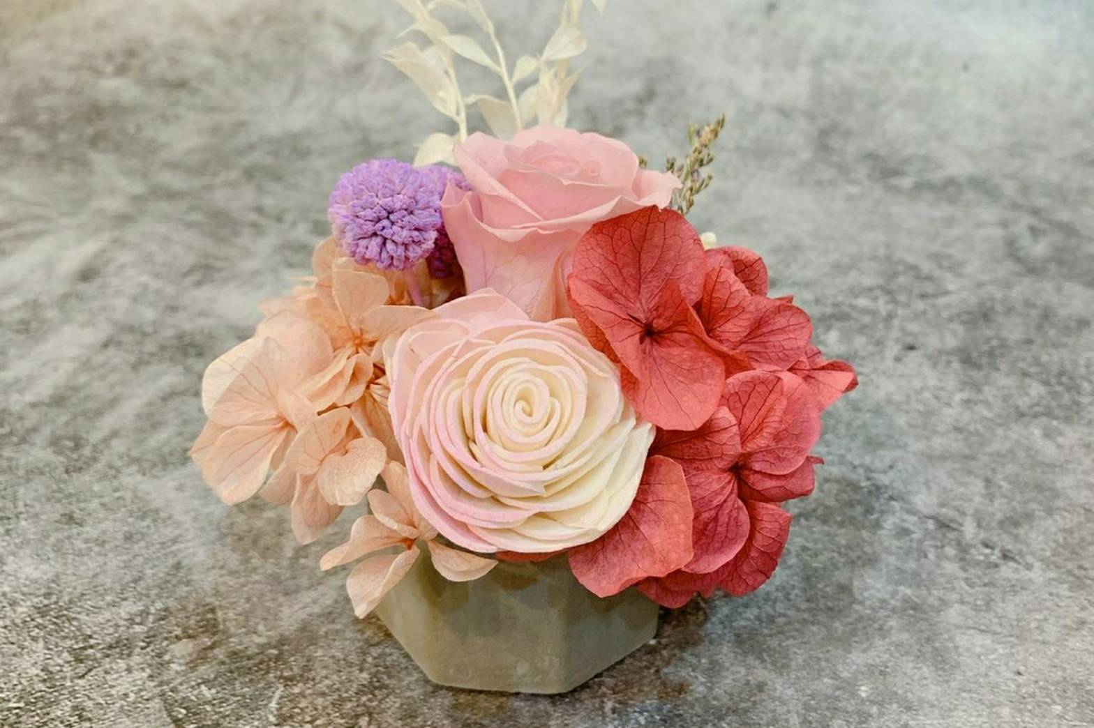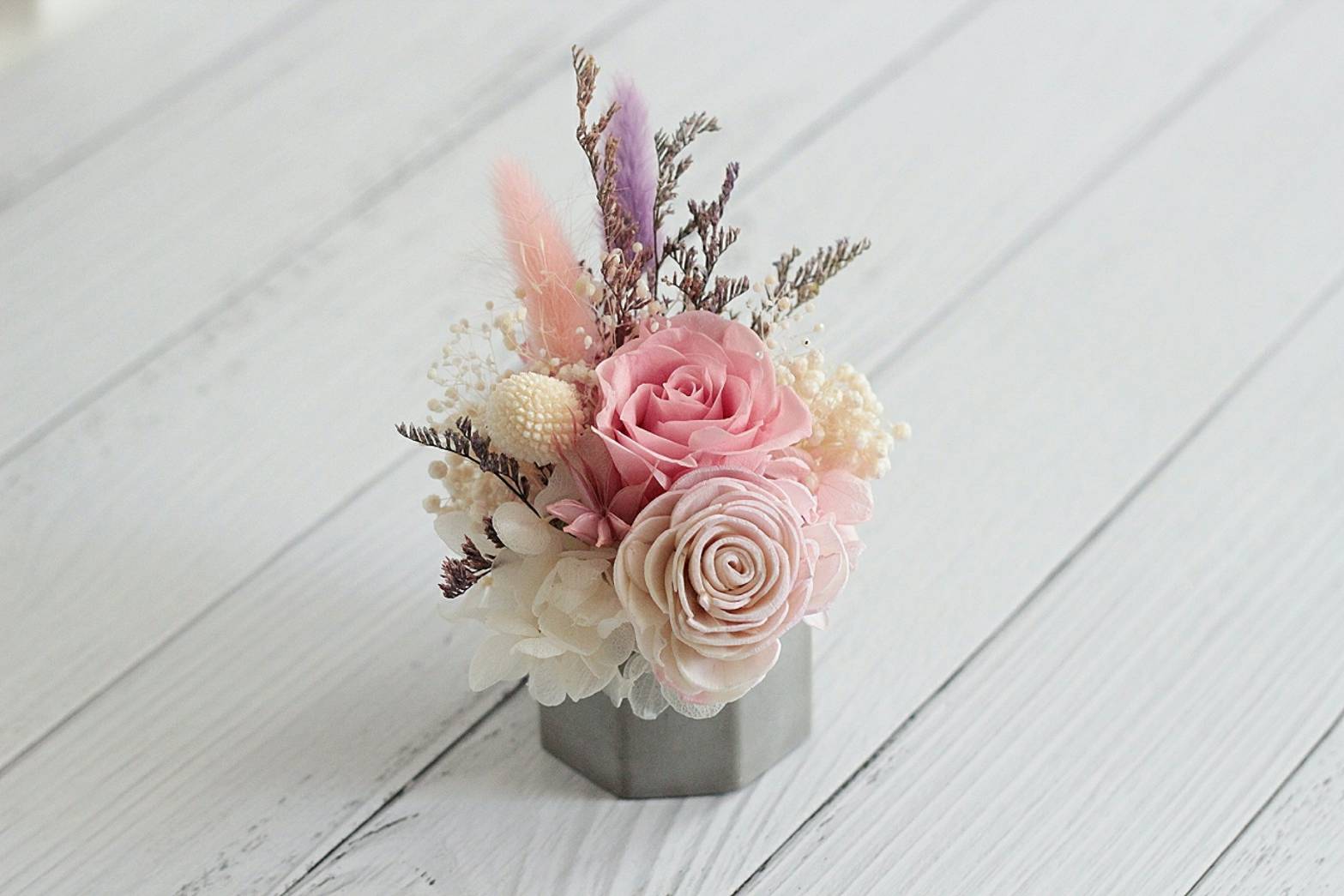 為了凸顯永生花的美,我們特地親手灌模八角水泥盆,讓成品出來質感在提升,不管是送禮或是自用都很適合唷 !