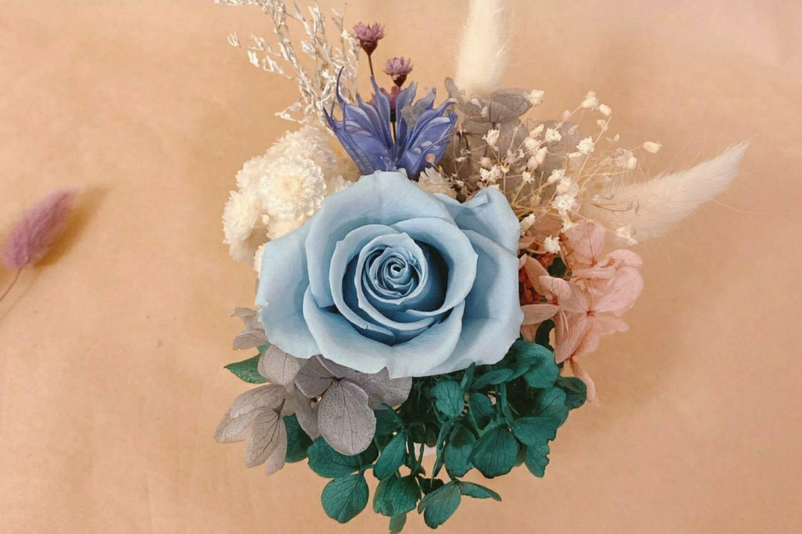 我們手作老師,過程中會帶領著你,挑選出自己喜歡的主花與配花,教你初學著也能做出來的方式,製作出專屬於你的不凋花盆,視覺的享受,體驗美所帶來的不同層次。