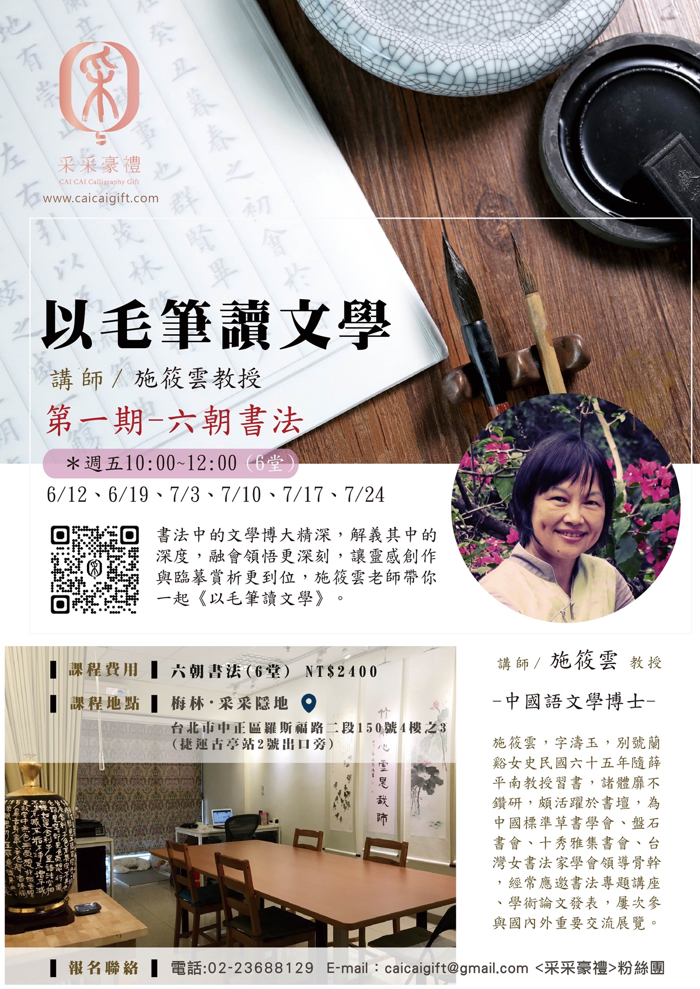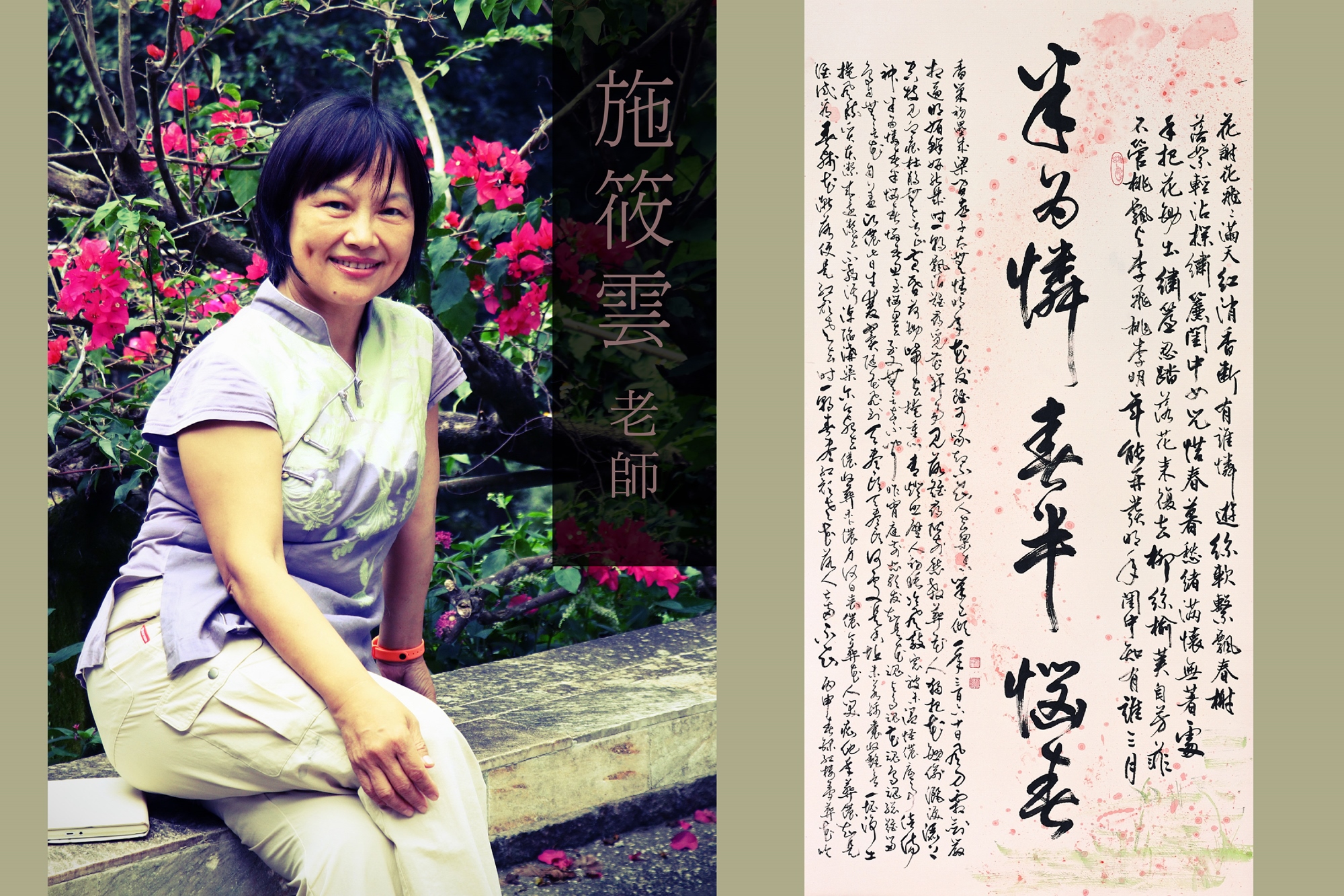 施筱雲,字濤玉,別號蘭谿女史民國六十五年隨薛平南教授習書,諸體靡不鑽研,頗活躍於書壇,為中國標準草書學會、盤石書會、十秀雅集書會、台灣女書法家學會領導骨幹,經常應邀書法專題講座、學術論文發表,屢次參與國內外重要交流展覽。