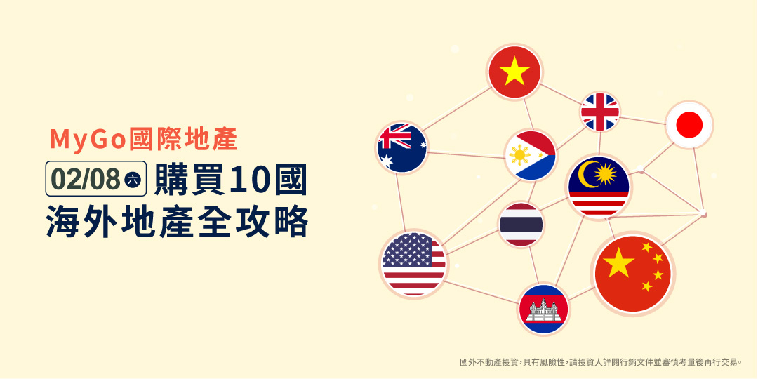 現在就報名02/08 MyGo商學苑-【購買10國海外地產全攻略】-台北場