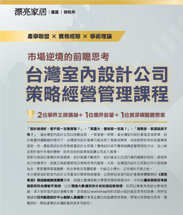 漂亮家居|運營研究所LV1:市場逆境的前瞻思考,台灣室內設計公司策略經營管理課程