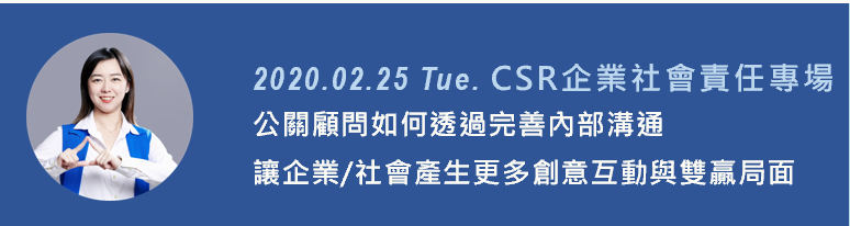 ► 2020.02.25 Tue. 18:00-20:00 CSR企業社會責任專場
