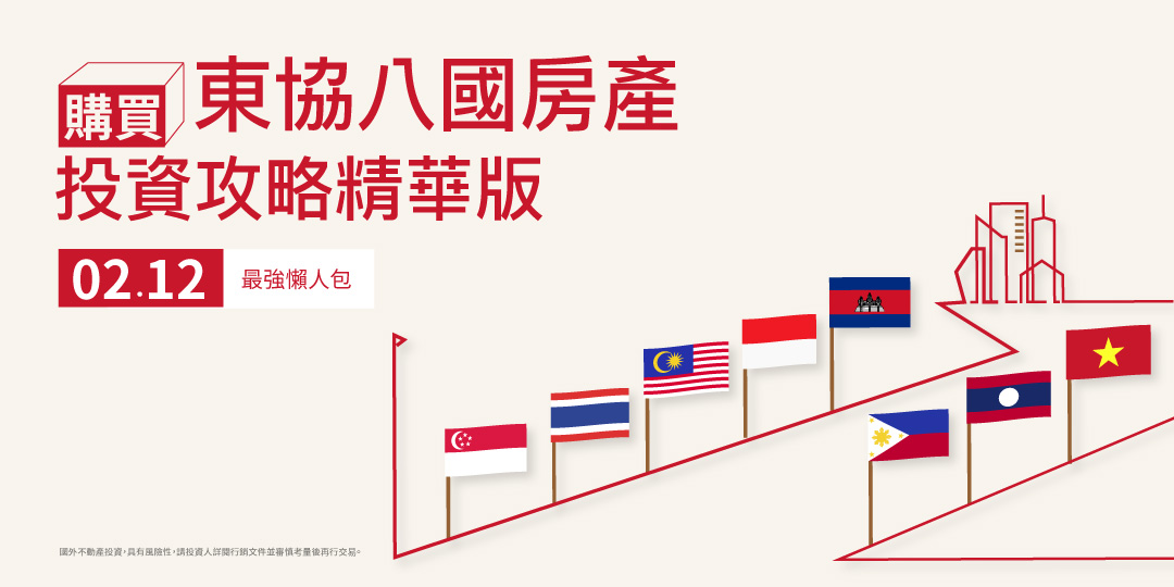 【東協八國房產投資攻略精華版!】講座 為您精闢分析中美貿易戰下,東協八國新加坡、馬來西亞、泰國、越南、印尼、柬埔寨、菲律賓、寮國的房地產投資趨勢,教您如何選擇安全可靠且具增值空間的建案、快狠準地選對投資標的、財富暴增不是夢!