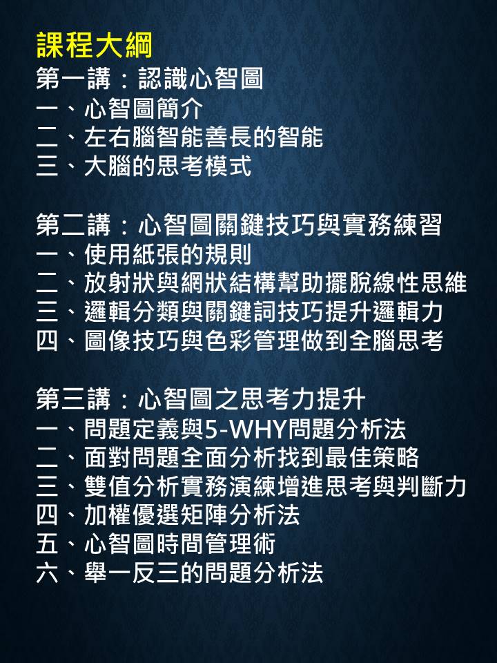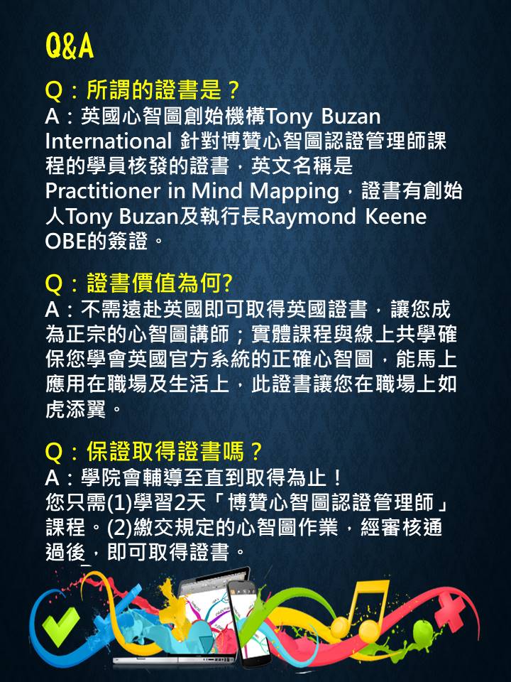 心智圖國際認證管理師《報名/購票須知》課程前2~3日,將會用Email通知您。課程名額的優先順序,以報名先後順序為準。如有其他問題歡迎Email至 service@iomm.com.tw,或是來電0800-000-931,我們將儘快為您答覆