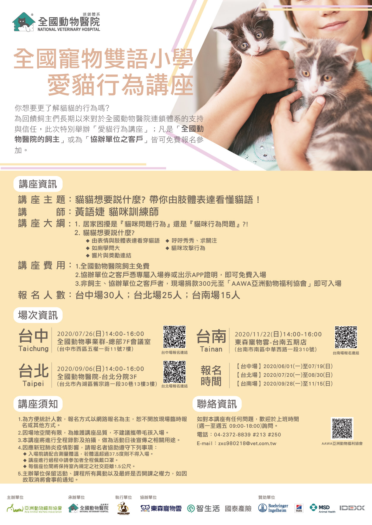 【活動名稱】全國寵物雙語小學-貓貓你想說什麼? 帶你由肢體表達看懂貓語!