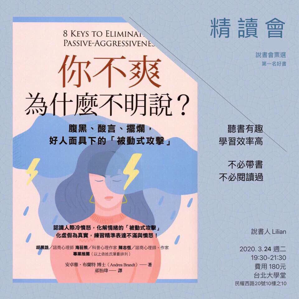 在本書中,賦予「被動式攻擊」清楚的定義, 並指出「被動式攻擊」的種種特徵, 帶領讀者一步步將「被動式攻擊」轉為 有效的溝通,幫助我們突破關係的僵局。
