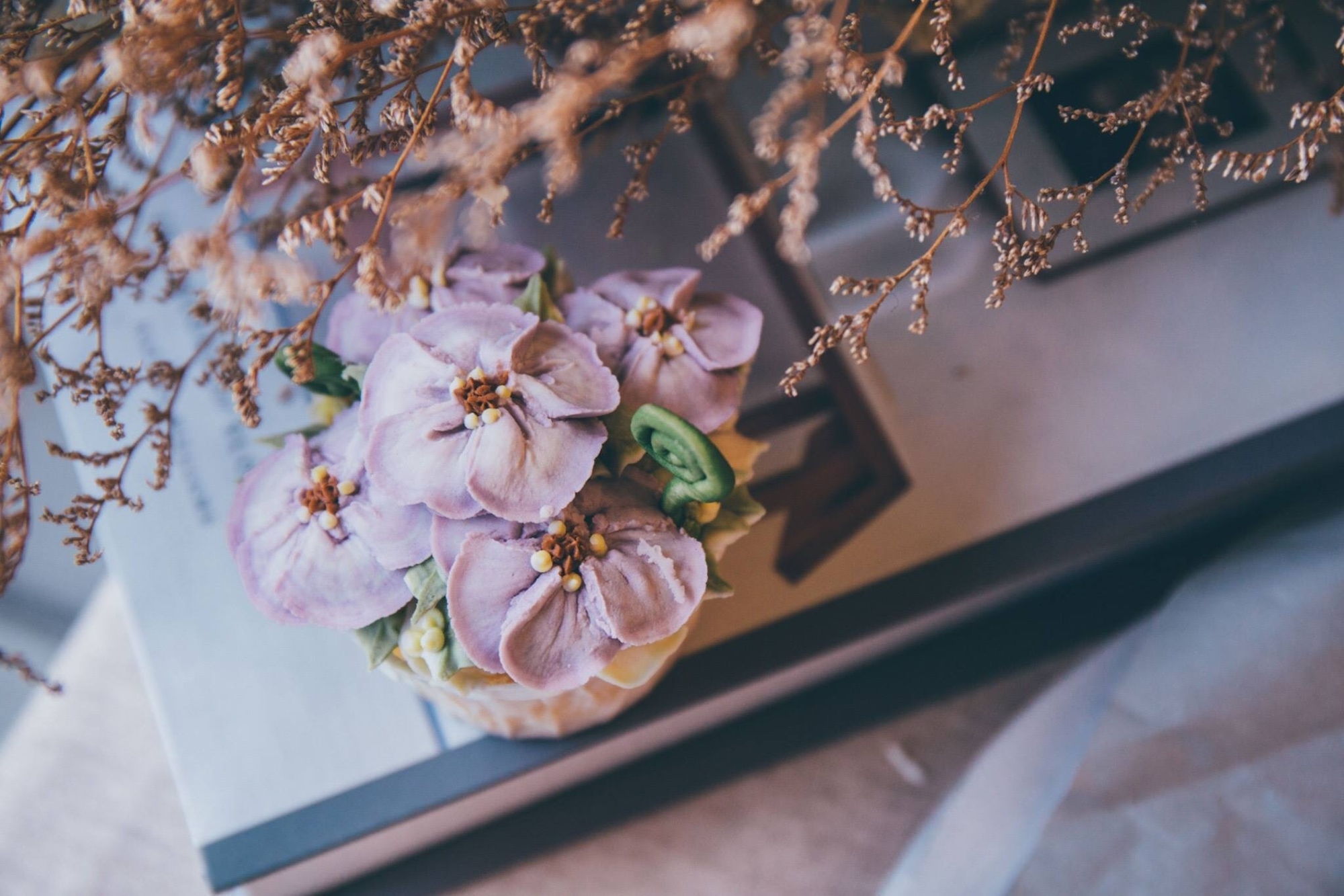 課程使用的豆沙鮮奶油霜皆使用法國進口鮮奶油調製而成,並選用純天然的色粉調出高雅清麗的顏色。口感香濃扎實的杯子蛋糕配上不甜不膩的豆沙鮮奶油霜,適合觀賞也適合食用。