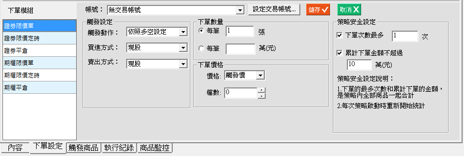 特點3:一次搞定部位控管、資金控管、帳戶控管、下單方式之設定