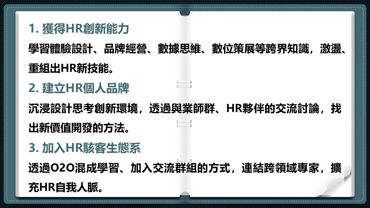 *課程費用將作為場地費、教材費、雜支、HR社群交流平台、數位內容策展、期末競賽獎金使用。