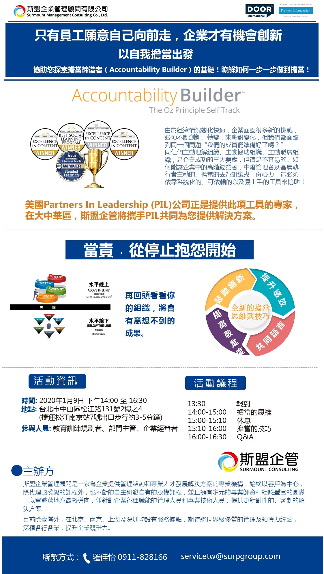可以聯繫我們到貴公司探討當責系列解決方案及相關演講。