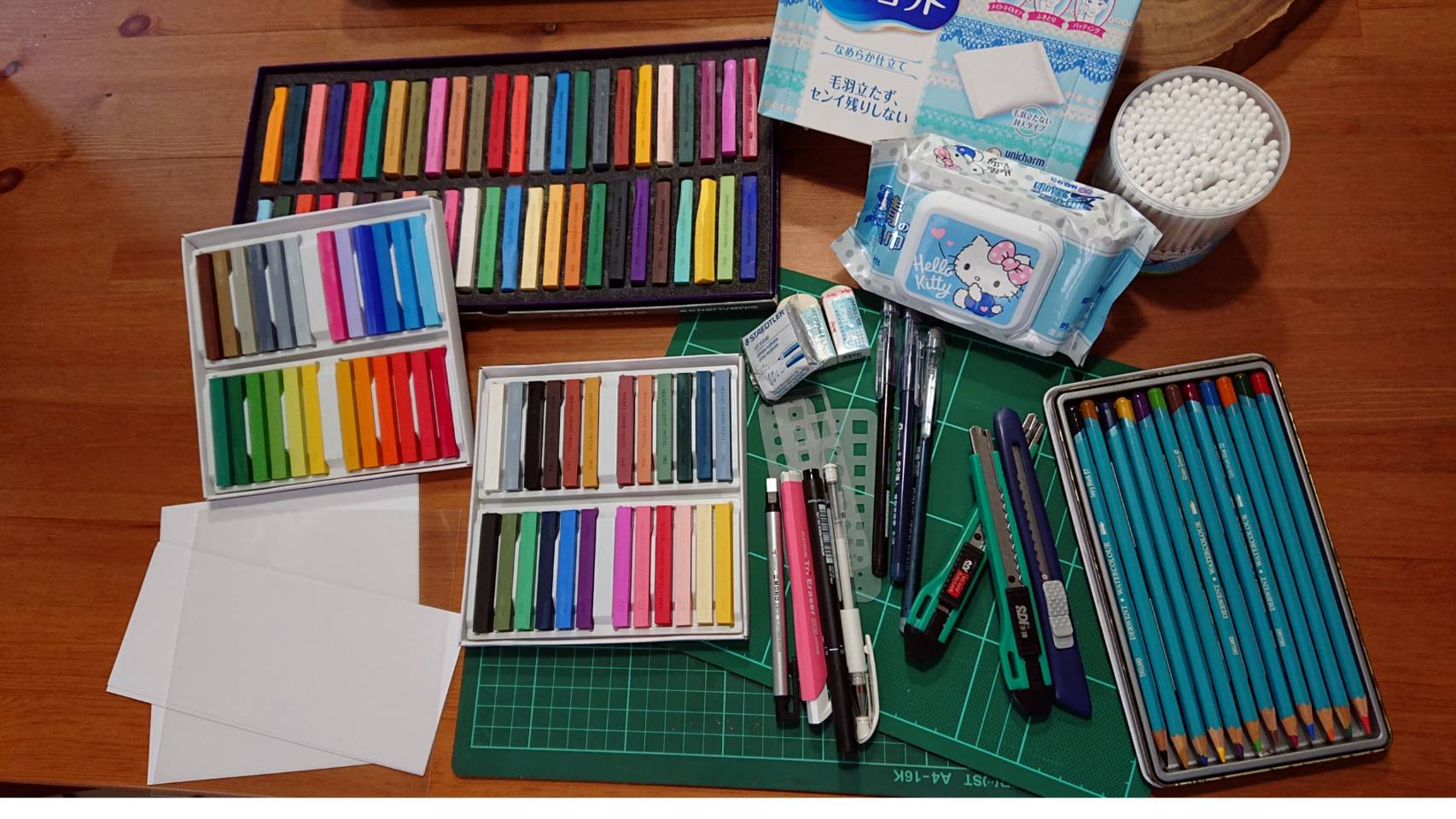高級粉彩筆 /和諧粉彩專用畫紙 / 型版紙 / 保護袋 / 切割墊 / 刀片 / 多款橡皮擦 / 化妝棉 / 拋棄式濕紙巾 / 棉花棒 / 色鉛筆 /日本圓珠筆