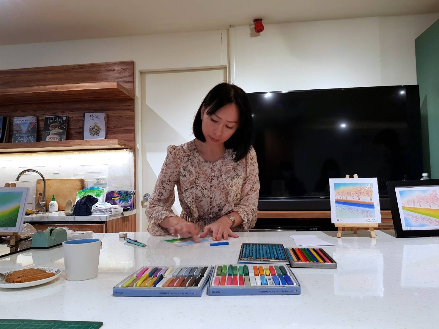 體會創作時的美好心流,讓手指塗抹粉彩時的觸感,再加上完成後溫暖的顏色,帶給自己一份美好。