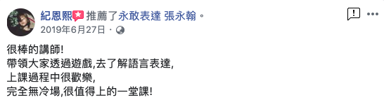 ◎ 更多資訊,請洽 永敢表達FB粉絲頁
