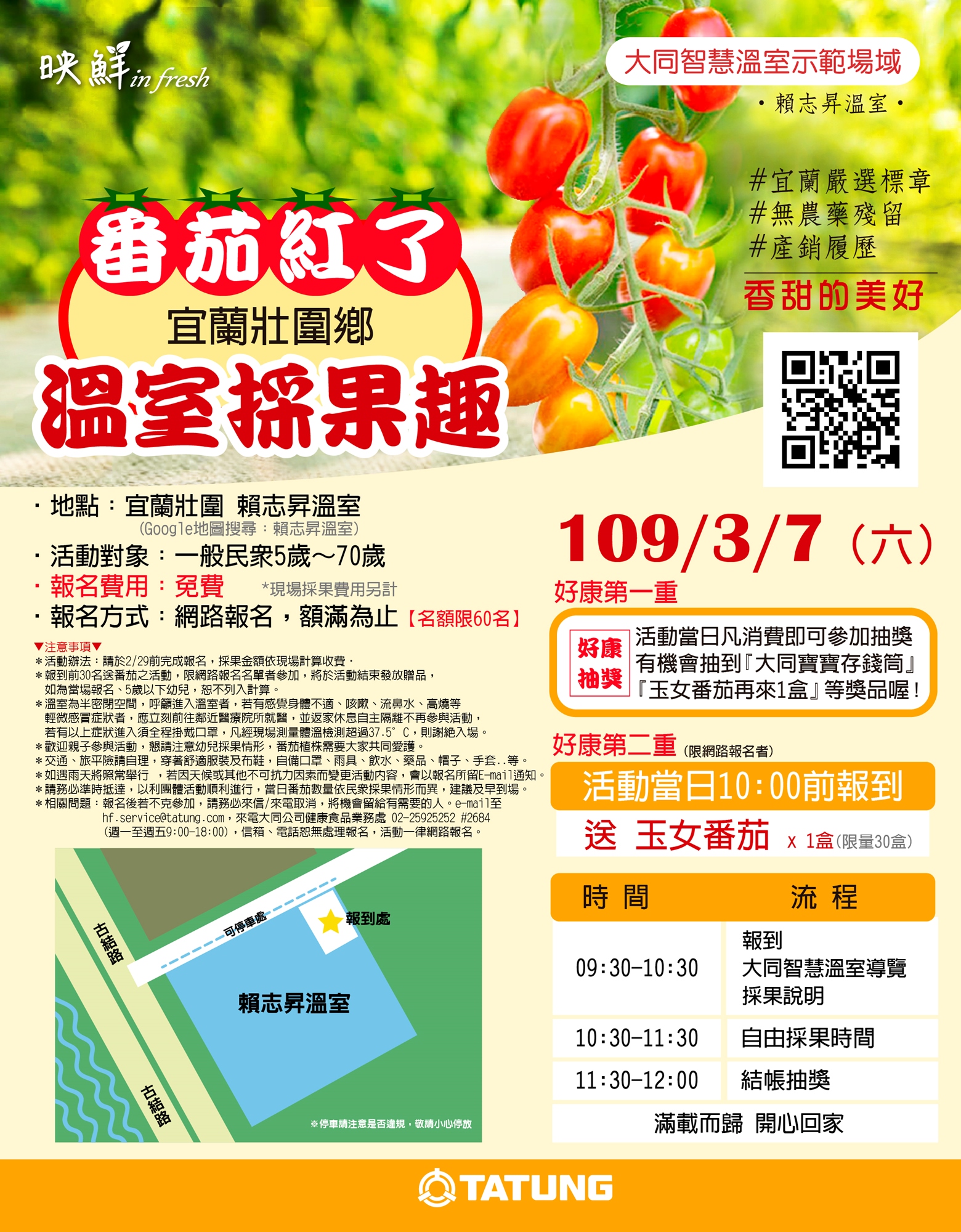 【★開放3名額★】大同智慧溫室-3/7宜蘭溫室番茄採果活動