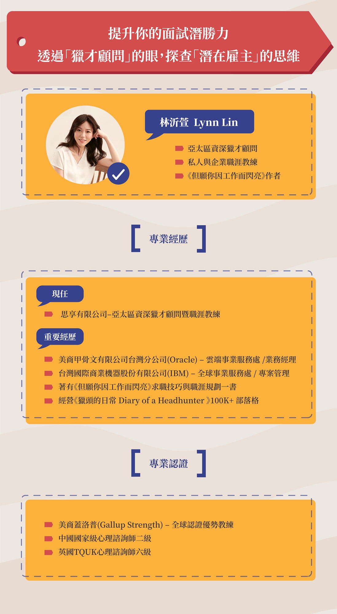 【LYNN. 職涯深度系列】提升你的面試潛勝力 - 心法講座 x 深度工作坊 x 一對一職涯諮詢