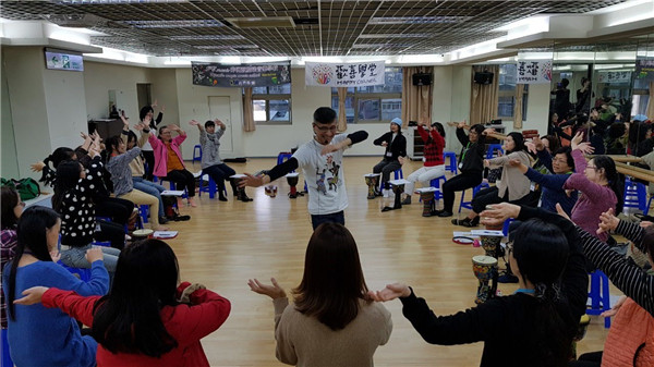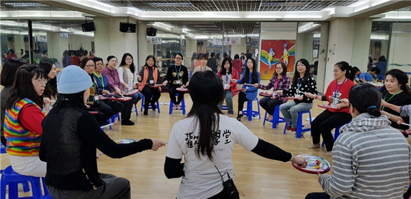 *在新北市五股老人公寓教授非洲鼓打擊已有12年