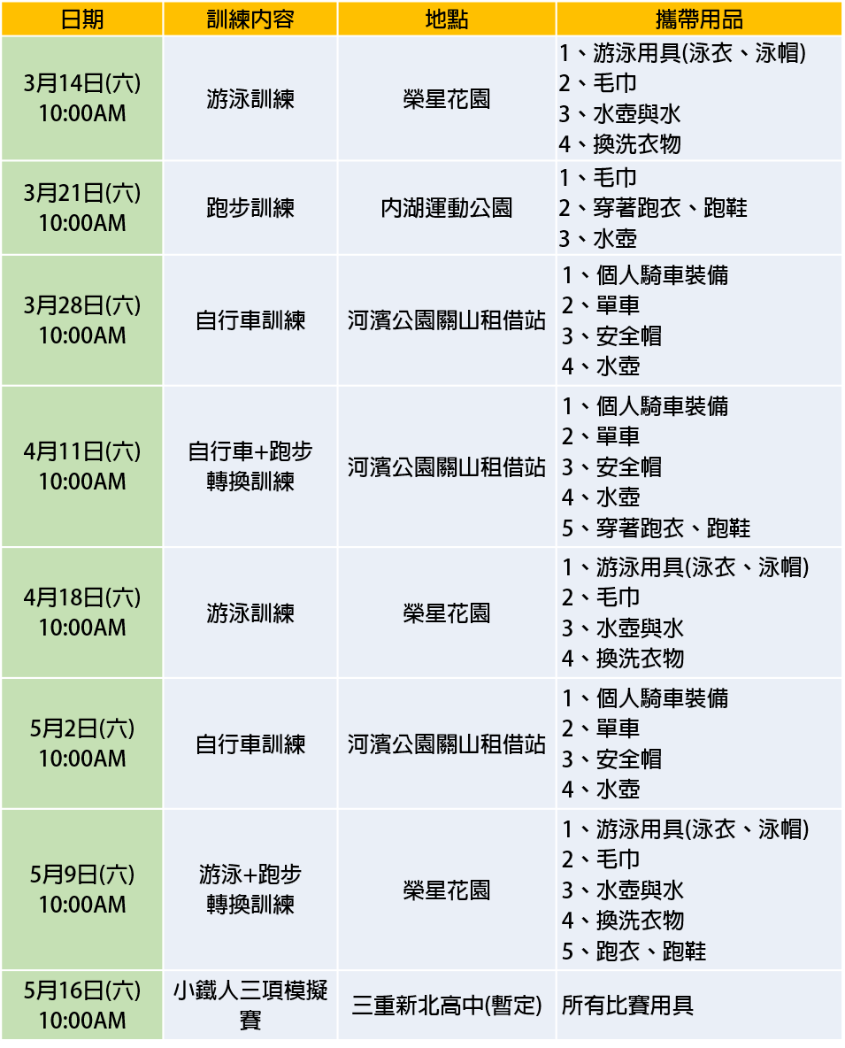 鐵人三項、運動技術指導、舉辦鐵人三項、路跑等各項運動賽事