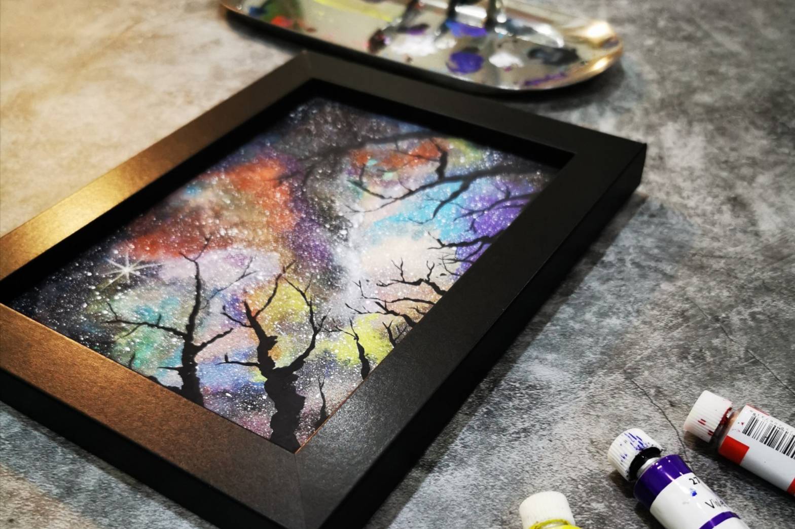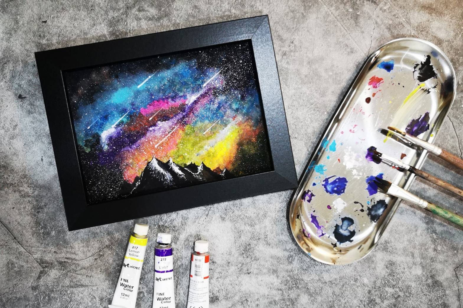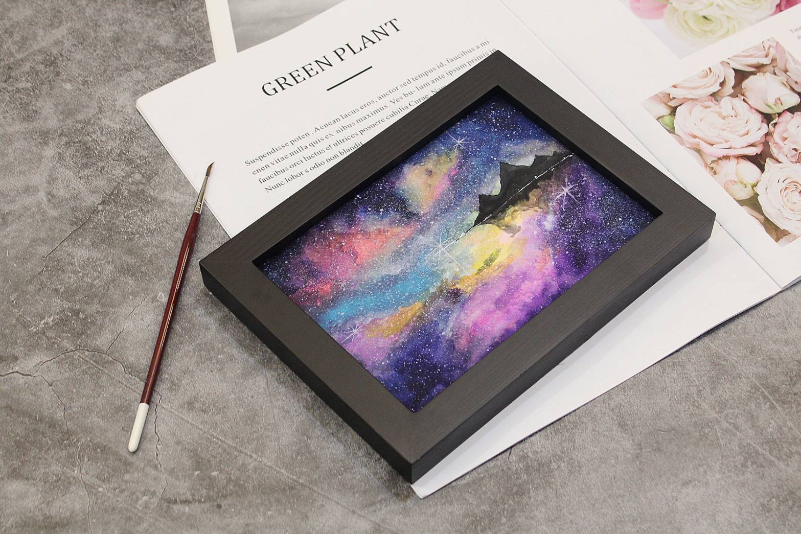 當我們畫完暈染星空畫,由老師帶領大家畫上前景,瞬間會完成高質感畫作,之後再將星空畫放入相框中,可以變成屬於自己的手作居家裝飾,讓家裡不起眼的角落變成美麗的空間,大家快來體驗吧!!