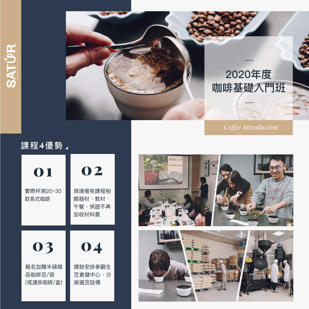 【2020年度咖啡基礎入門班|Coffee Introduction】 介紹咖啡樹種、果實到杯中所經歷的故事,並由專業咖啡師帶領學員實際品嚐(杯測)不同品種、產區、處理法,及辨別瑕疵豆的咖啡風味學習咖啡杯測與評鑑 {4大優勢} ✔ 實際杯測20~30款各式咖啡 ✔ 現場備有課程相關器材、教材、午餐,保證不再加收材料費 ✔ 報名加贈半磅精品咖啡豆/袋(或濾掛式精品咖啡/盒) ✔ 課餘安排參觀生豆倉儲中心、分級選豆設備