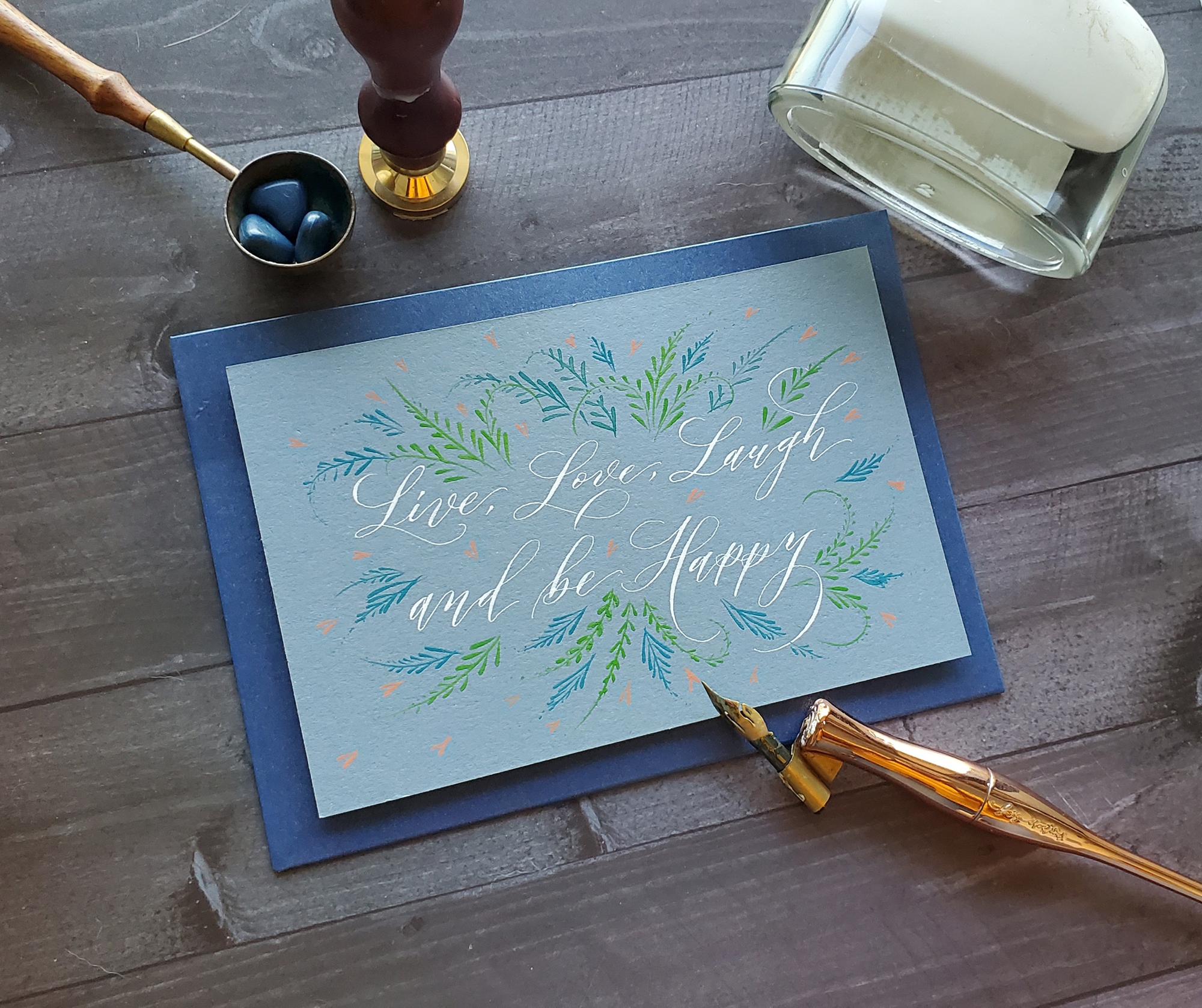 奔放自由的摩登體是初學者容易上手的點尖沾水筆字體。 摩登體難度較低,藉由一些簡單的技巧,就能變化出活潑華麗的變體,信手捻來隨性耐看,非常適合初學者應用在卡片、手帳中。