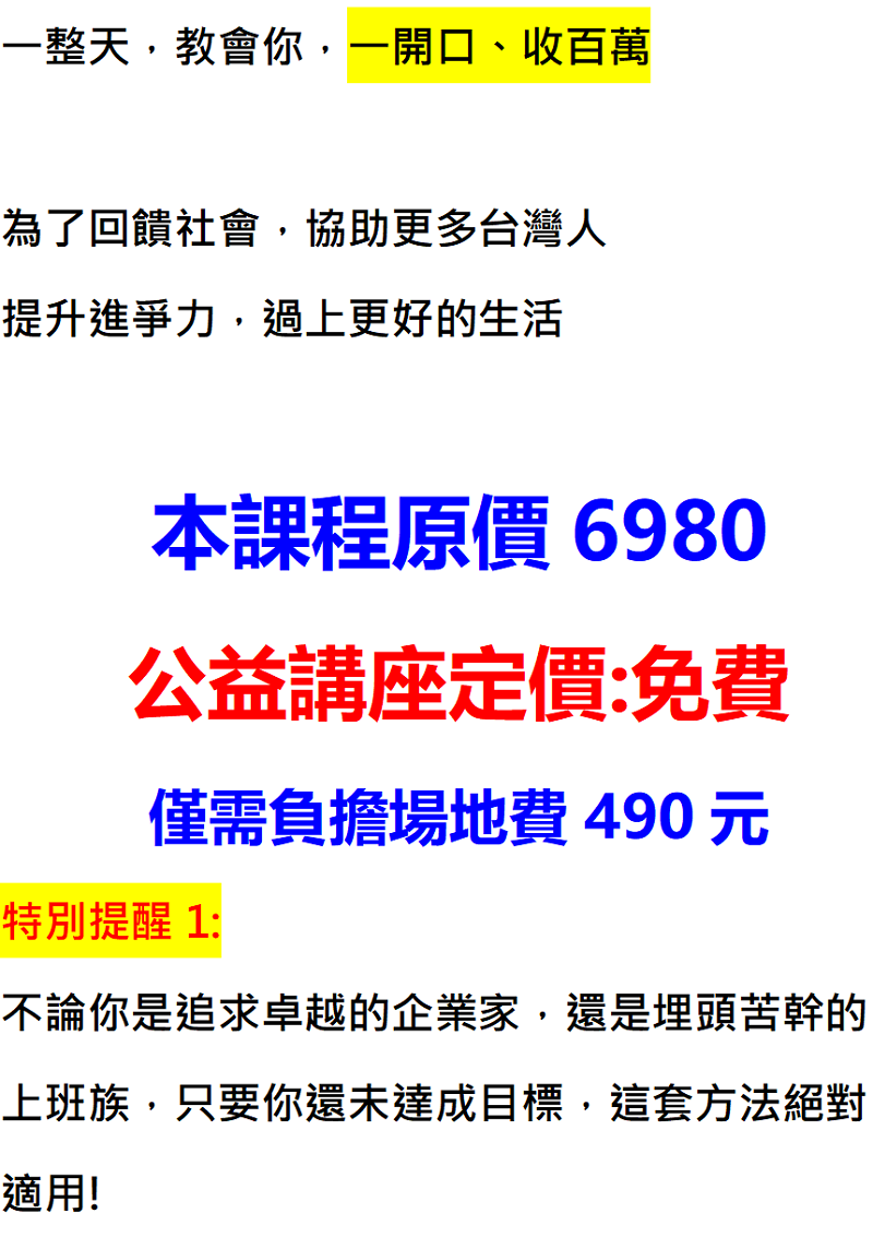 3/14 如何一開口就成功收錢【 亞洲第一潛能激發大師|許伯愷 】(品牌經營管理) (創業行銷)