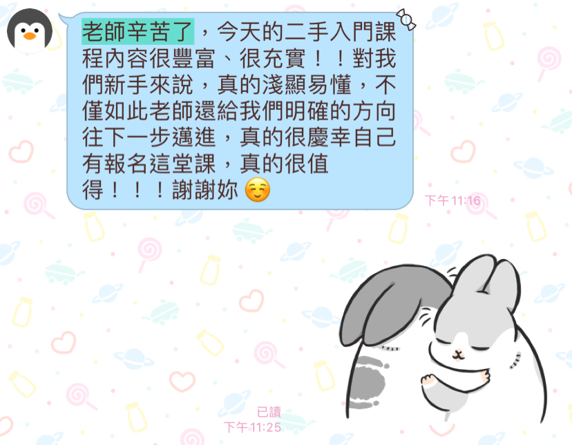 這個老師不會讓初學者煩惱唷,會在後續課程教學到哪裡帶貨會是最便宜的,作為老師的學生,充足貨源也能夠支援學生補貨喔!
