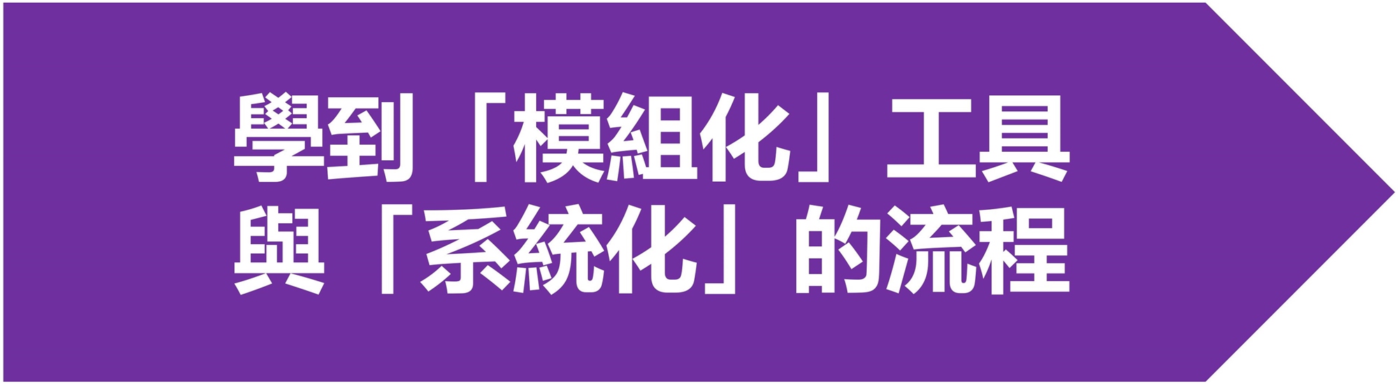 在這本書中,你可以學到「模組化」工具與「系統化」的流程,包括: