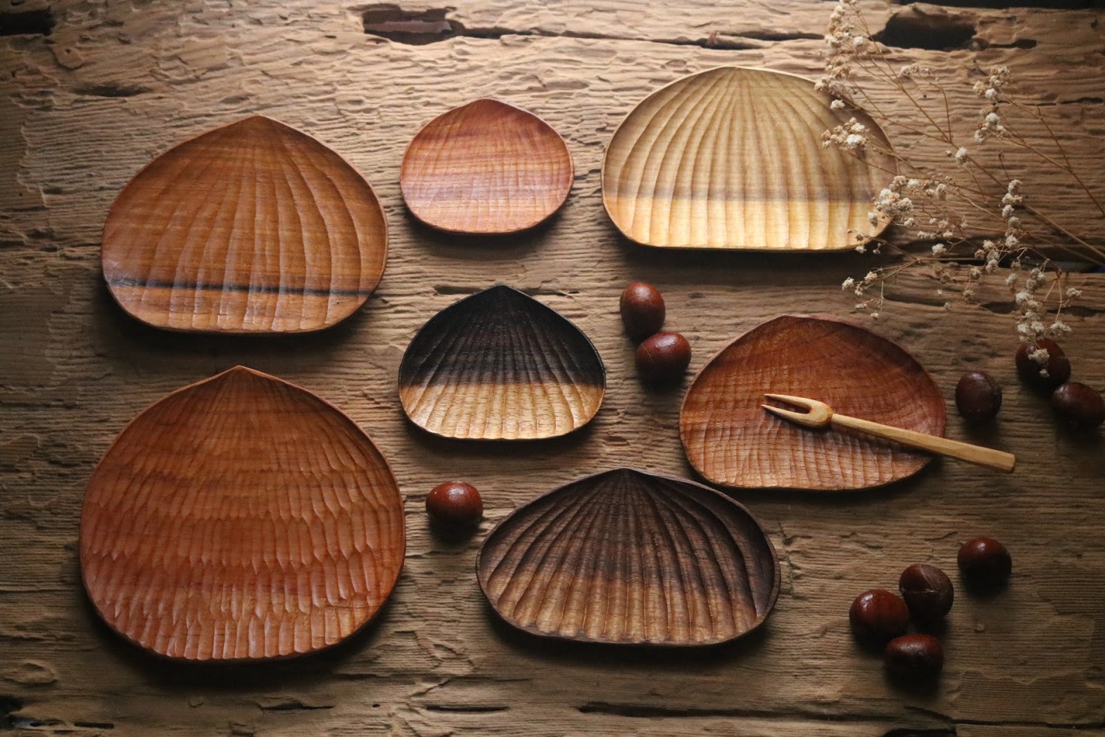 細緻有具有手感的雕刻紋理,在不同木種卻有著相同雙色紋路的木材上,