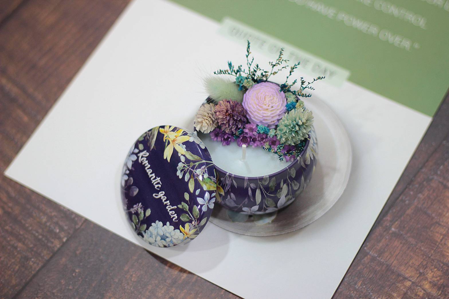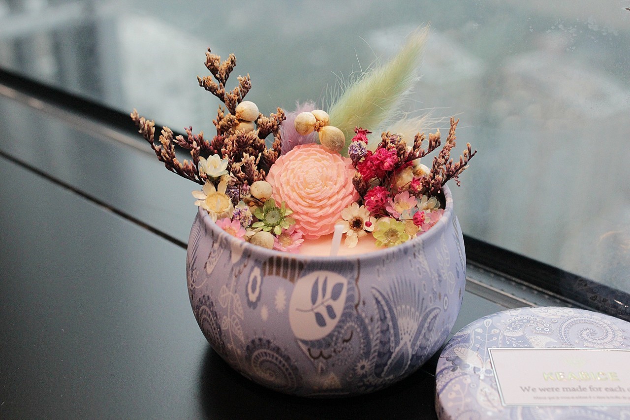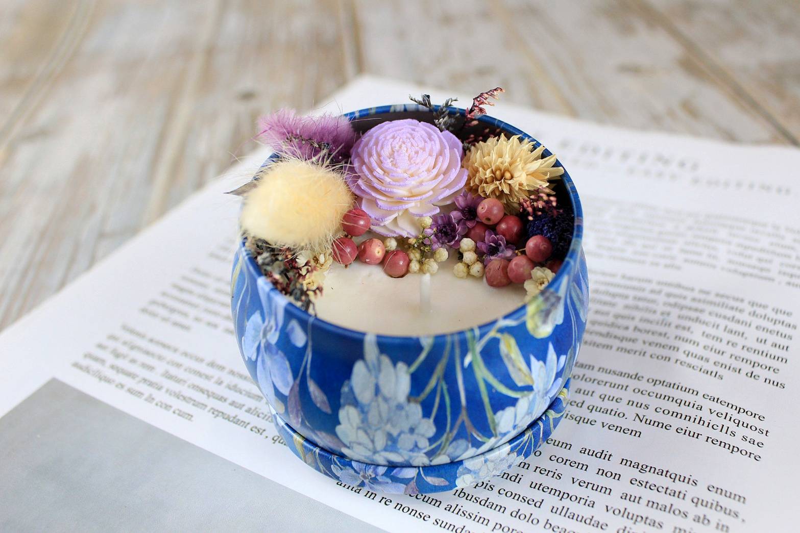 乾燥花的美是獨一無二的,搭配不同的花與調配不同的顏色,使用天然大豆蠟與香氛精油,交織編成美麗的一幅畫。透過香氛精油,滴在蠟燭裡面,放在居家室內,不燃燒也有著擴香的作用,即使放在不起眼的小角落,都構成視覺嗅覺的饗宴,讓設計師幫你設計,製作可以妝點自己家的收藏品。