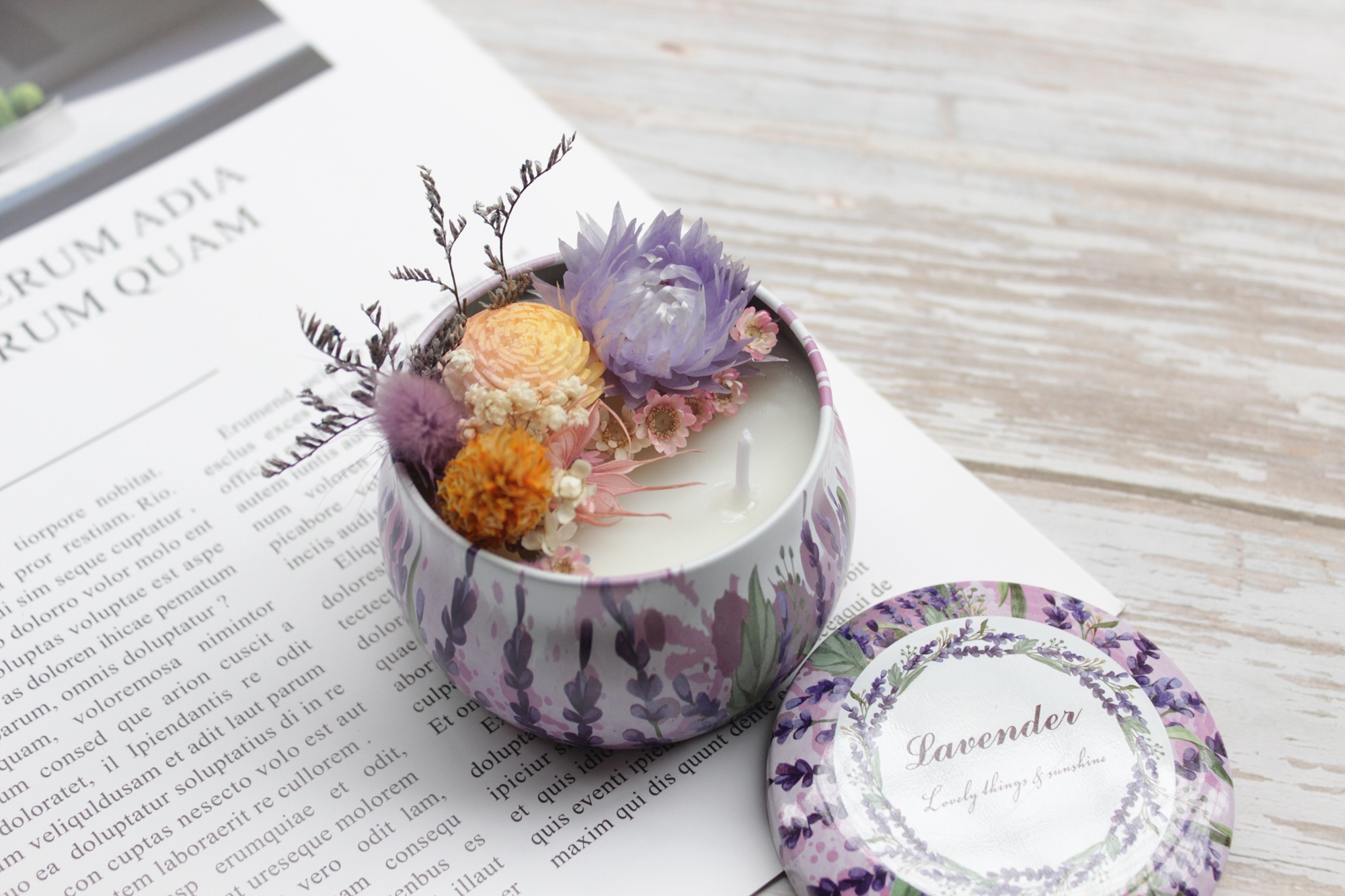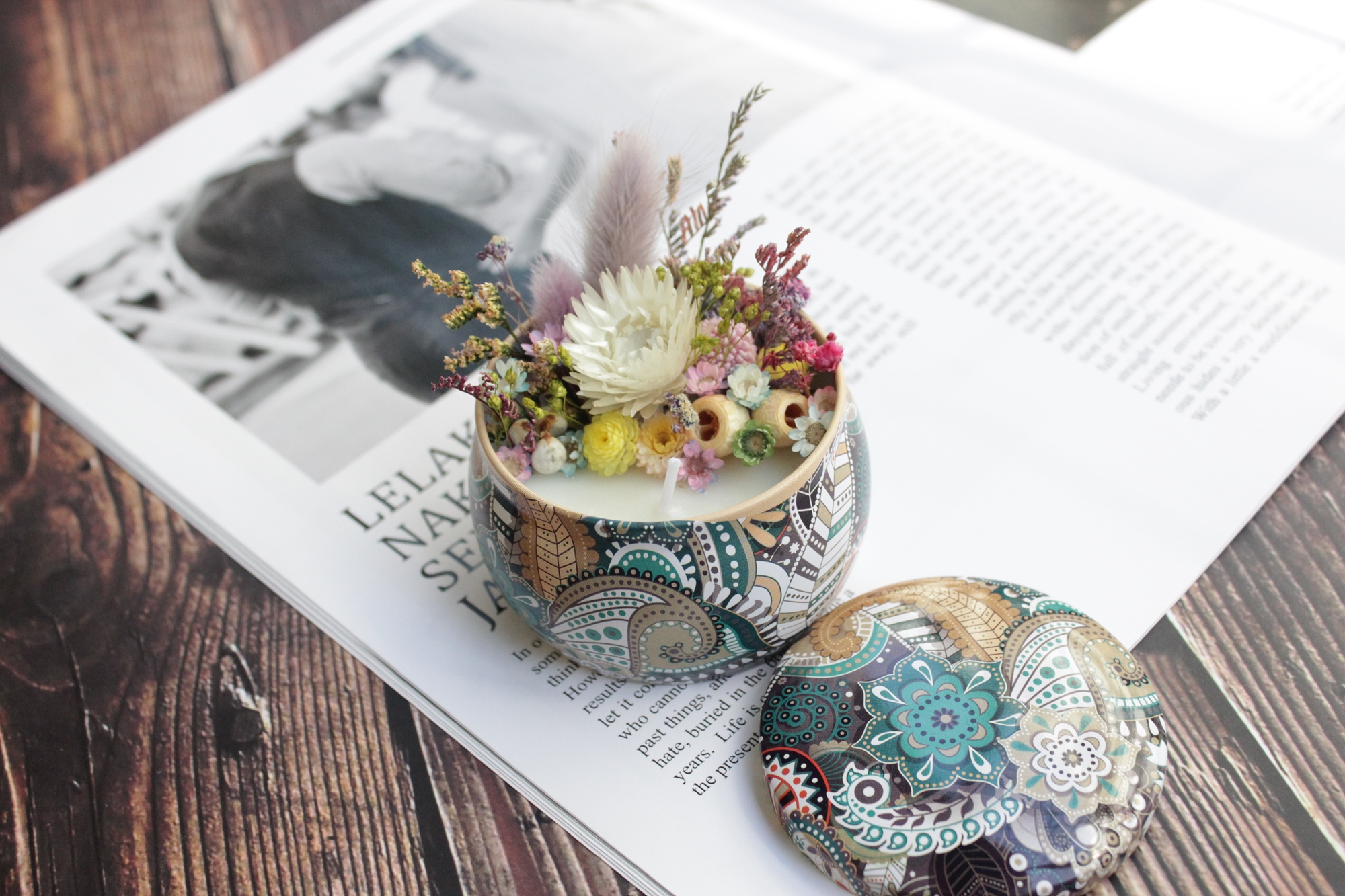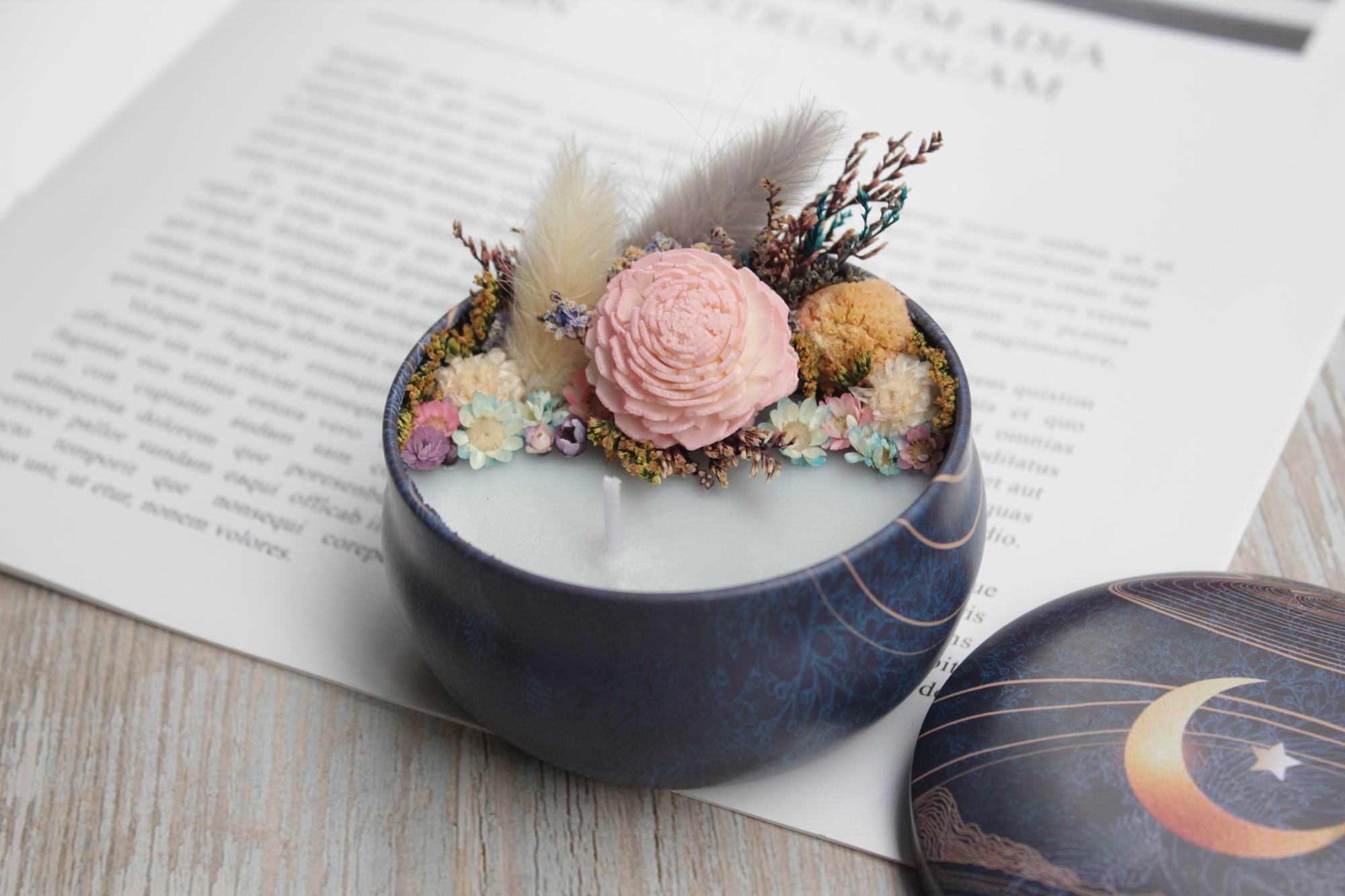 乾燥花的美是獨一無二的,搭配不同的花與調配不同的顏色,使用天然大豆蠟與香氛精油,交織編成美麗的一幅畫。透過香氛精油,滴在蠟燭裡面,放在居家室內,不燃燒也有著擴香的作用,即使放在不起眼的小角落,都構成視覺嗅覺的饗宴,讓設計師幫你設計,製作可以妝點自己家的收藏品。