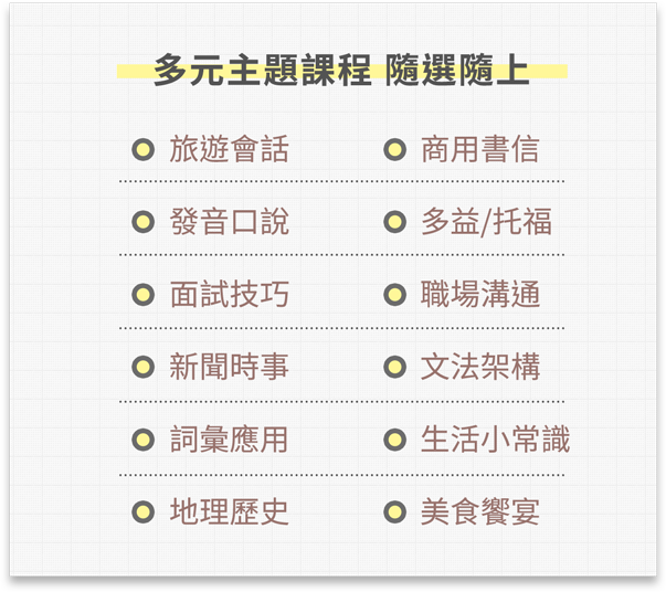 只要符合大專院校學生資格,憑 [學生證] 即可免費領取英語課程,多元主題課程隨你上,新舊會員都可免費上線學習!