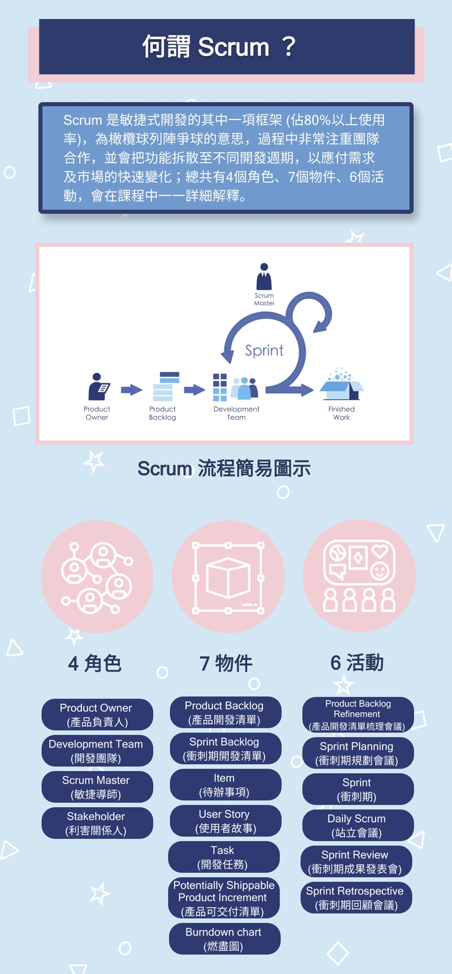 如果你採用了Scrum卻不熟悉,那這堂課將協助你從頭釐清敏捷式開發和Scrum的所有細節與概念,讓你在實際流程遇到的問題迎刃而解