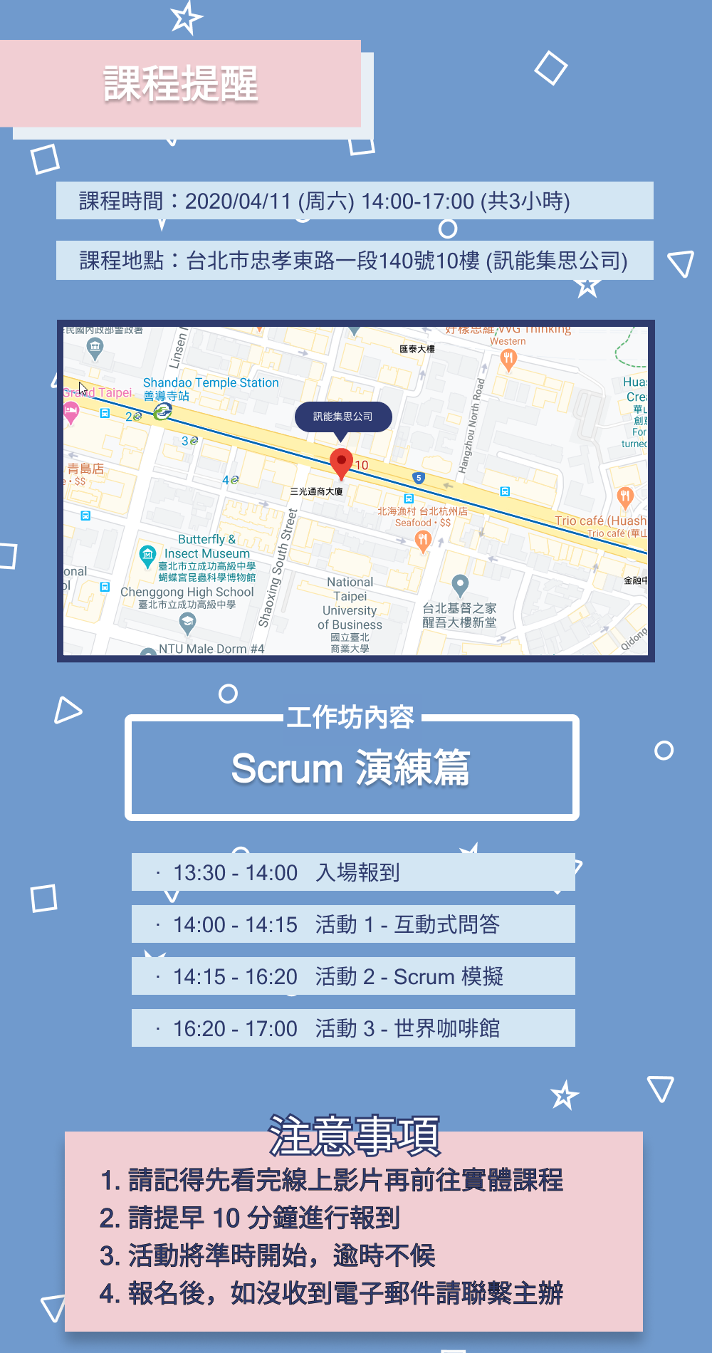 坊間敏捷式課程以及資源很多,但大多數著重在口述概念以及理論說明,很難讓學員課後直接實際採用導入到目前的專案。