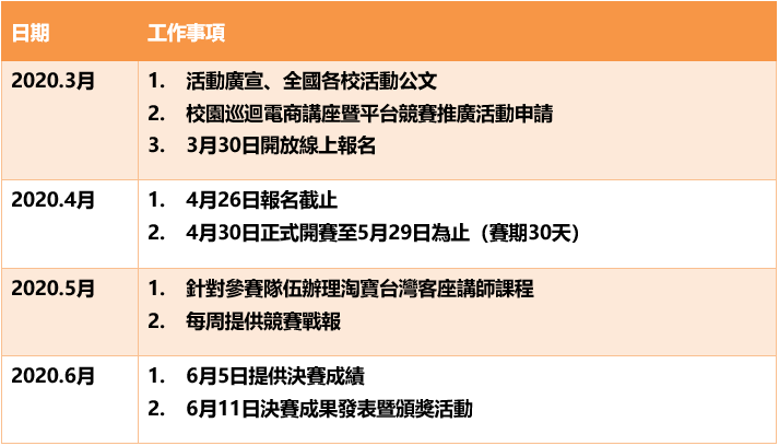 - 特別獎 3,000元淘寶台灣電商獎學金或等值禮物及每隊獎狀一紙(含指導老師)