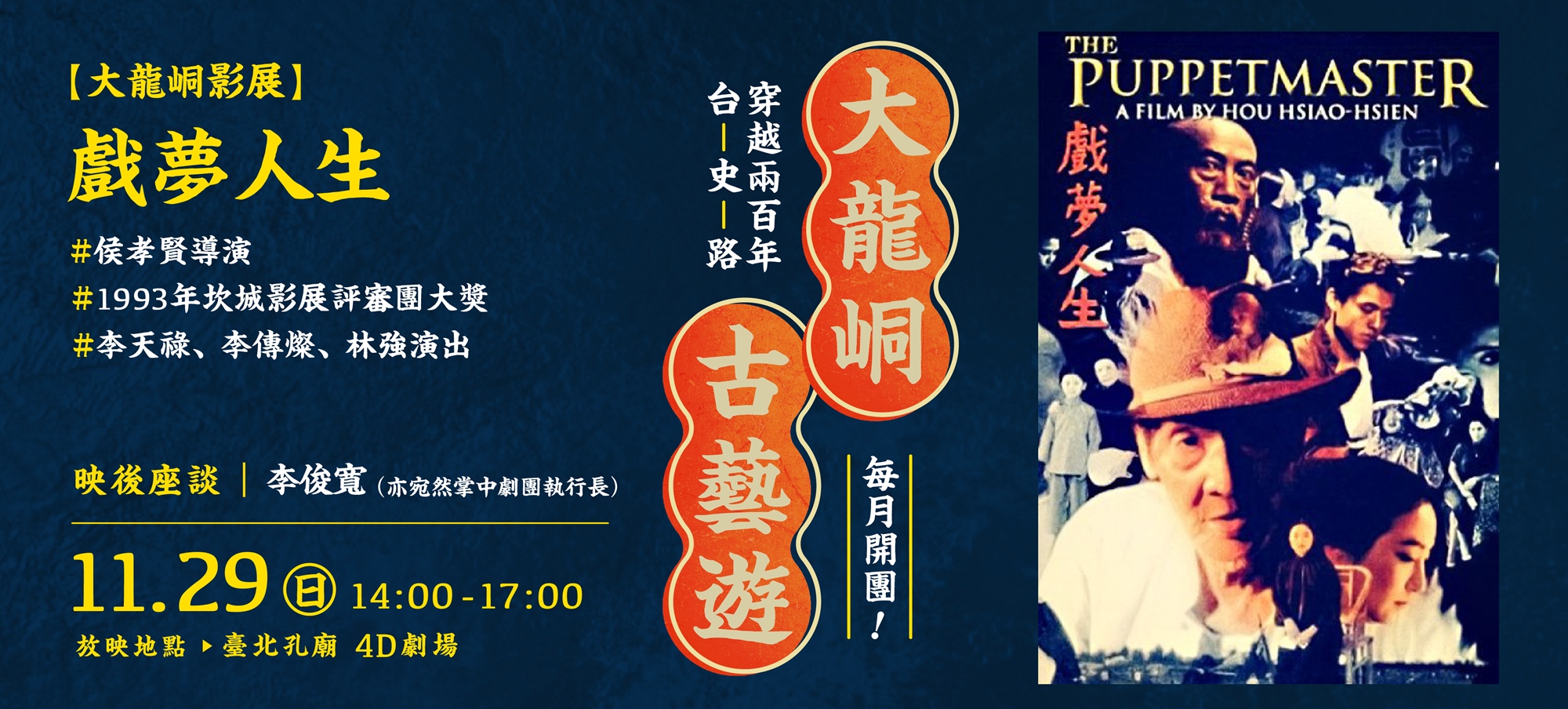 11/29 (日) | 《戲夢人生》 #李天祿傳記式電影 | 映後座談 李俊寬 | $100 | |