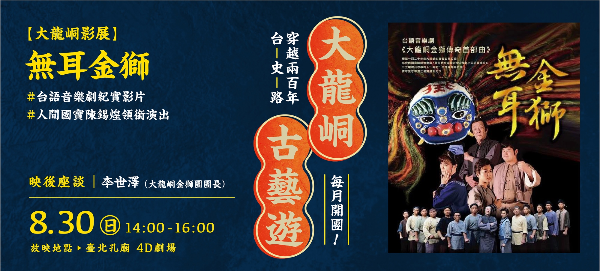 8/30 (日) | 《無耳金獅》 #台語音樂劇紀實影片 | 映後座談 李世澤 | $100 | |