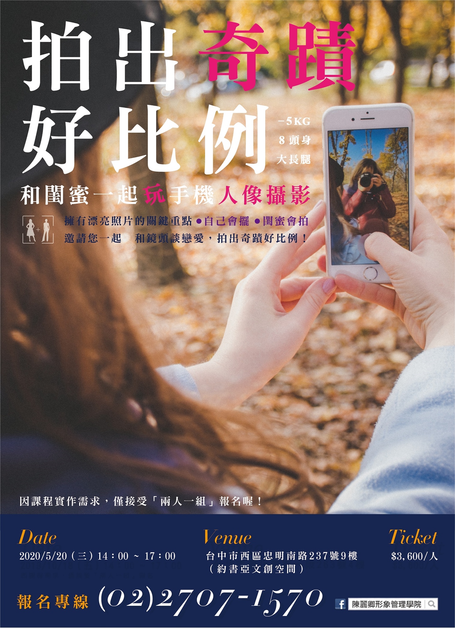 *本課程含大量拍攝實作,需要「兩人一組」參加,歡迎揪你的閨蜜一起報名喔!