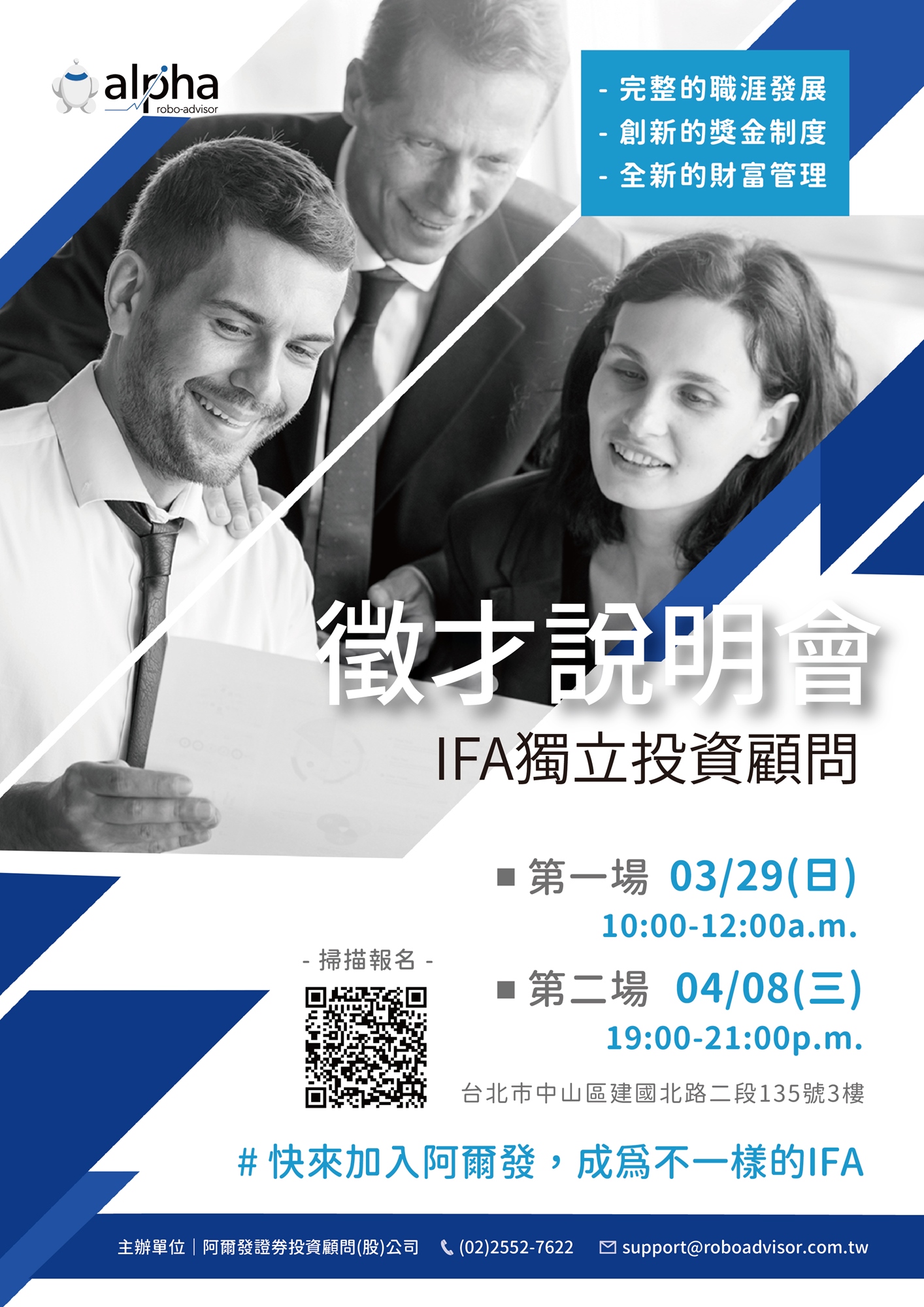 本場活動將會說明目前產業現況、公司介紹與詳細解說工作內容,我們歡迎各位武林高手前來共襄盛舉,不論你是目前金融業的同仁,還是其他產業但對金融具有強烈熱忱的夥伴,我們都非常歡迎您來參與我們的IFA 投資顧問招募說明會唷!