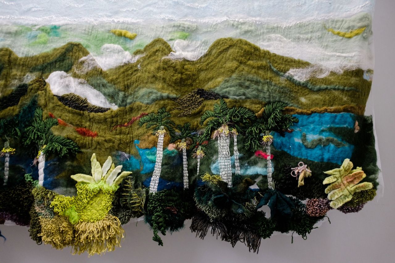 策展藝術家王荷瑄,擅長羊毛氈、編織、刺繡等創作方式,尤其運用羊毛氈的軟雕塑和色彩特質,發展精緻大型的雕塑和巨幅立體的編織畫作。喜歡山林和大自然,常漫步山中,透過山習得更多的創作靈感,這次帶著大家選色搭配刺繡,做出屬於自己的風景畫。