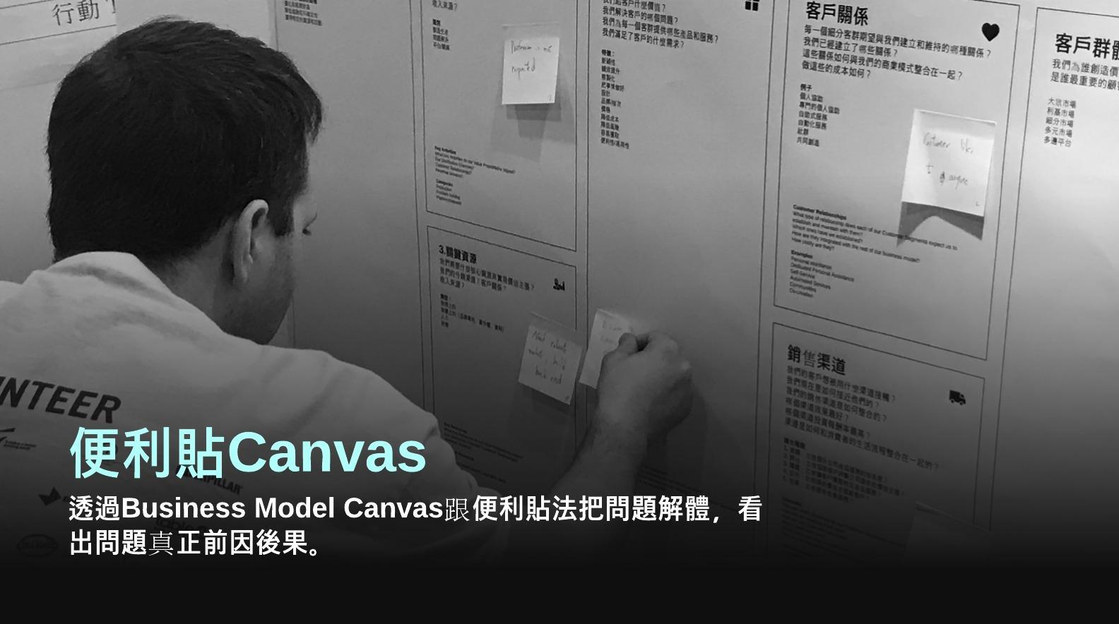 透過Business Model Canvas跟便利貼法把問題解體,看出問題真正前因後果。