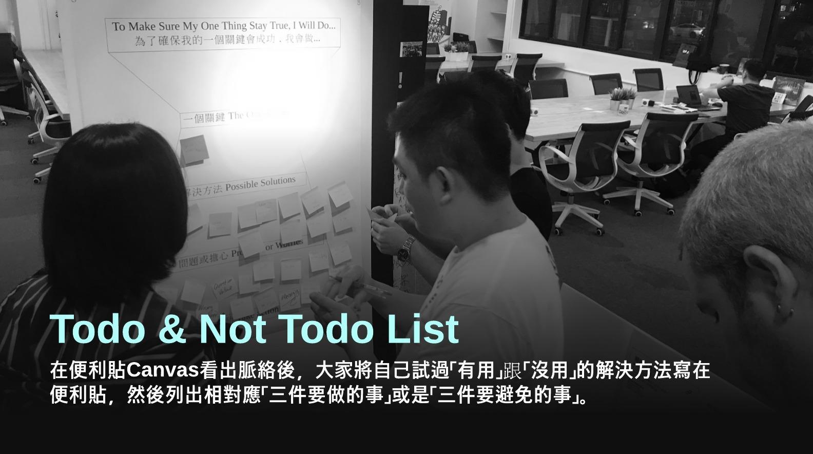 在便利貼Canvas看出脈絡後,大家將自己試過「有用」跟「沒用」的解決方法寫在便利貼,然後列出相對應「三件要做的事」或是「三件要避免的事」。
