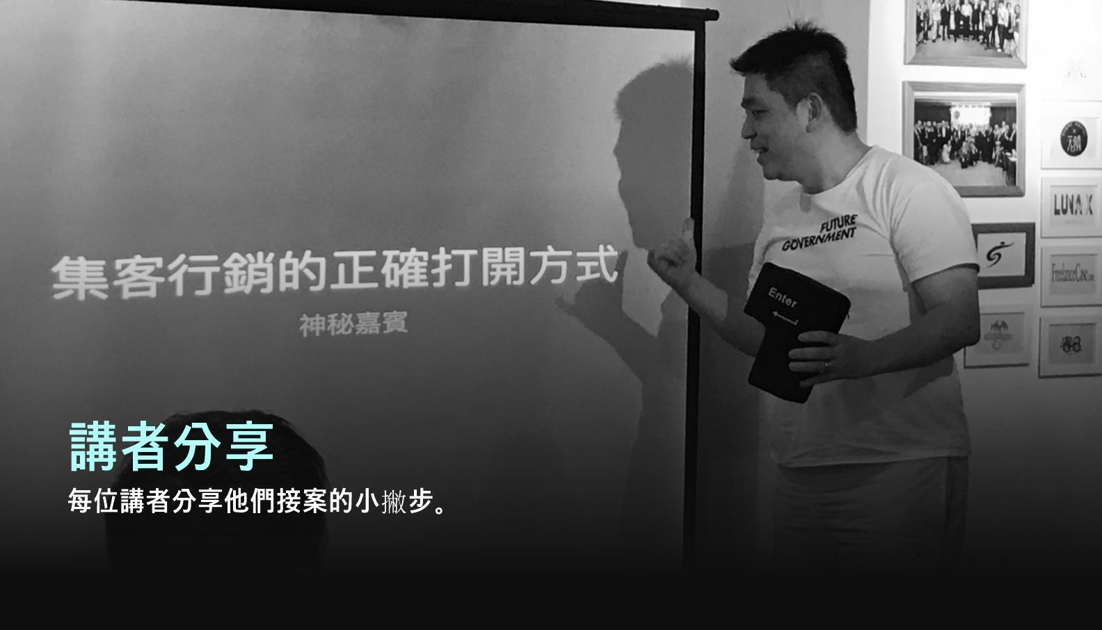 接案小聚是一個解決自由工作者接案問題的聚會,帶著問題來到這裡,帶著解決方法的Todo list開心地離開。