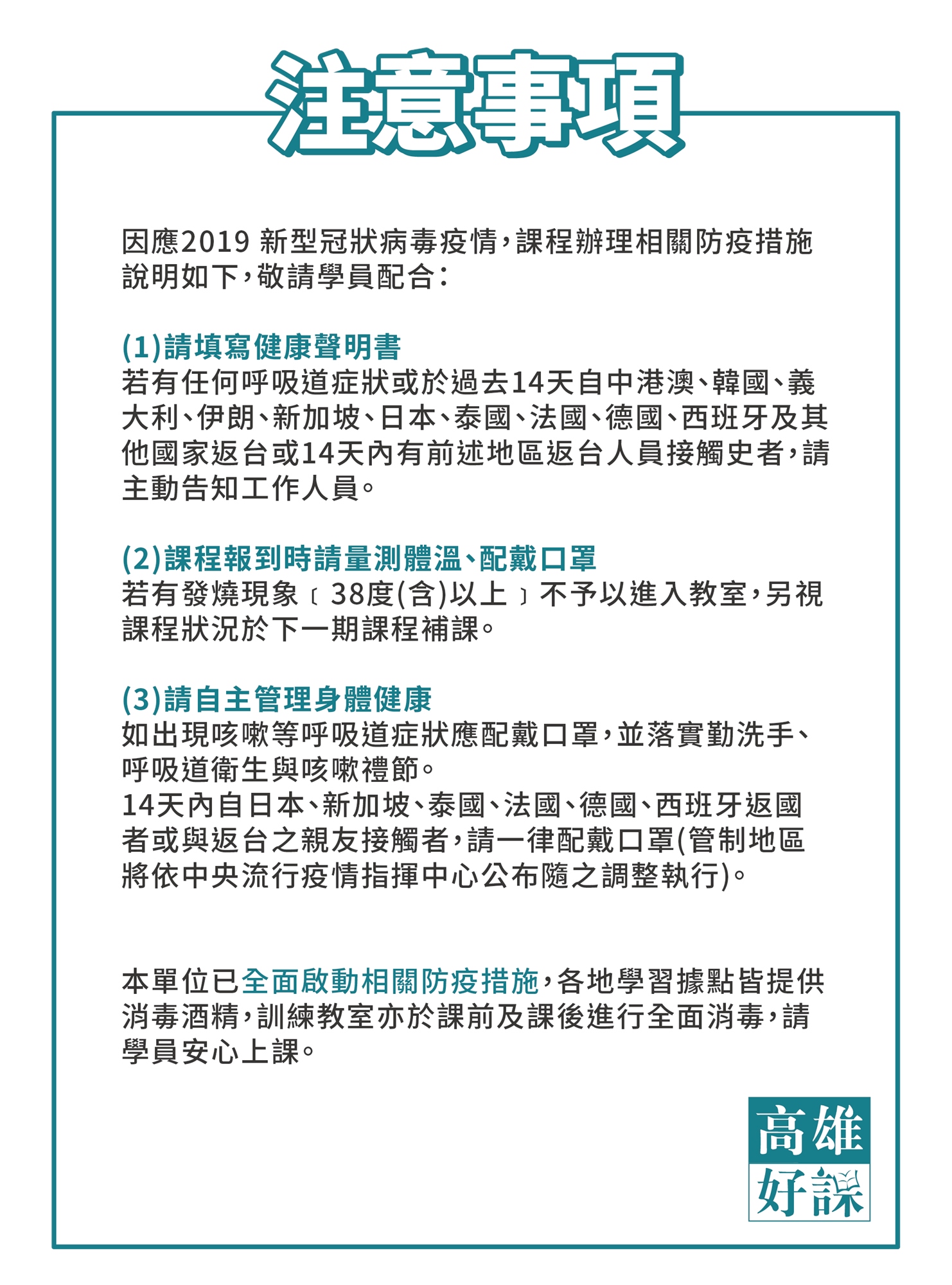 地點:高雄市苓雅區中正二路175號13樓之3(K135教室)