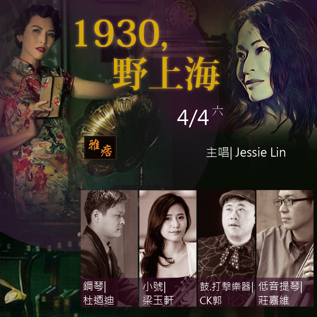 香頌女伶Jessie Lin、爵士鋼琴家杜迺迪、小號音樂家梁玉軒、低音提琴家莊嘉維、鼓手CK郭,揭開復古上海的時光…