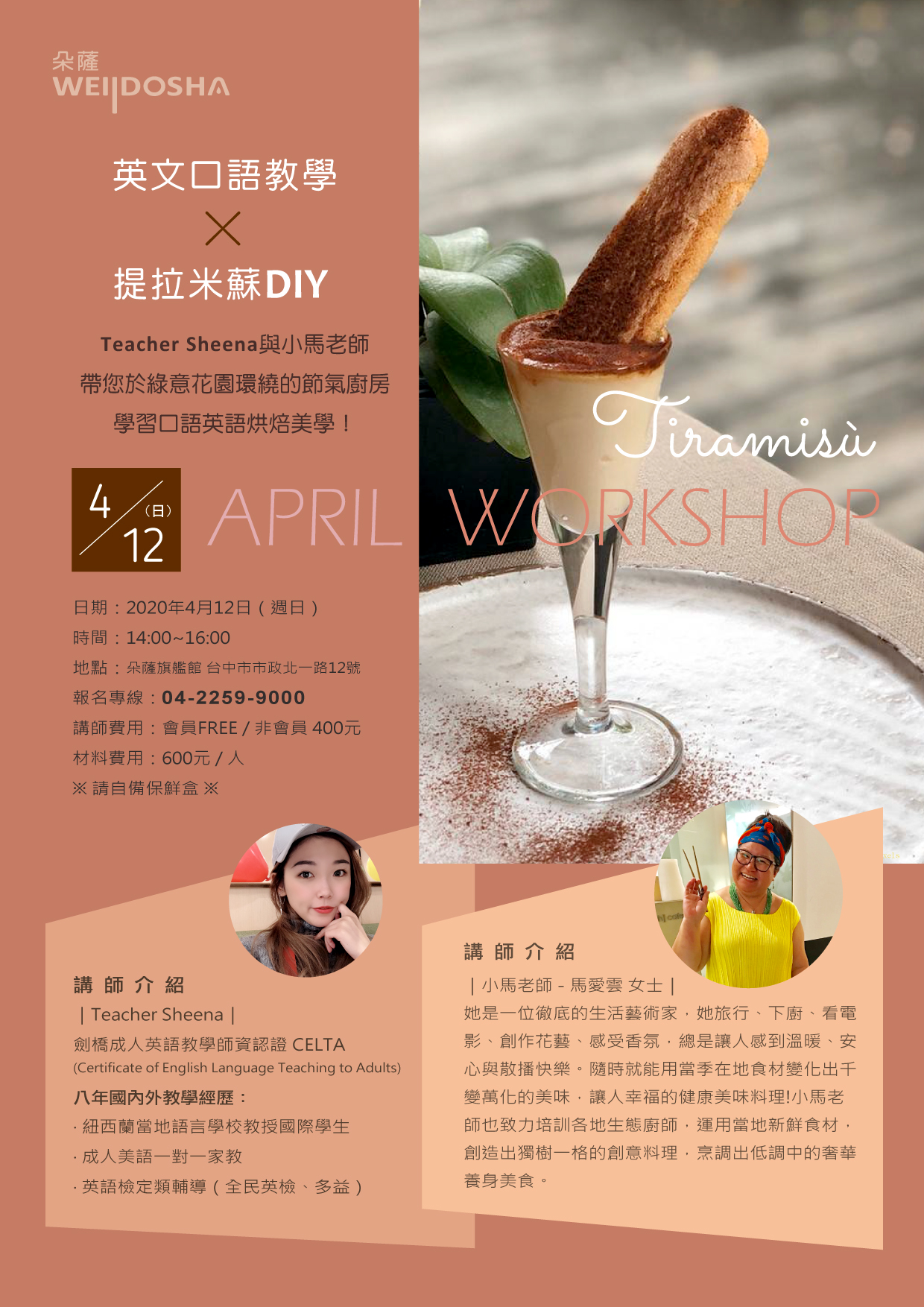 那就來報名 朵薩Workshop 跟著Sheena料理學英文