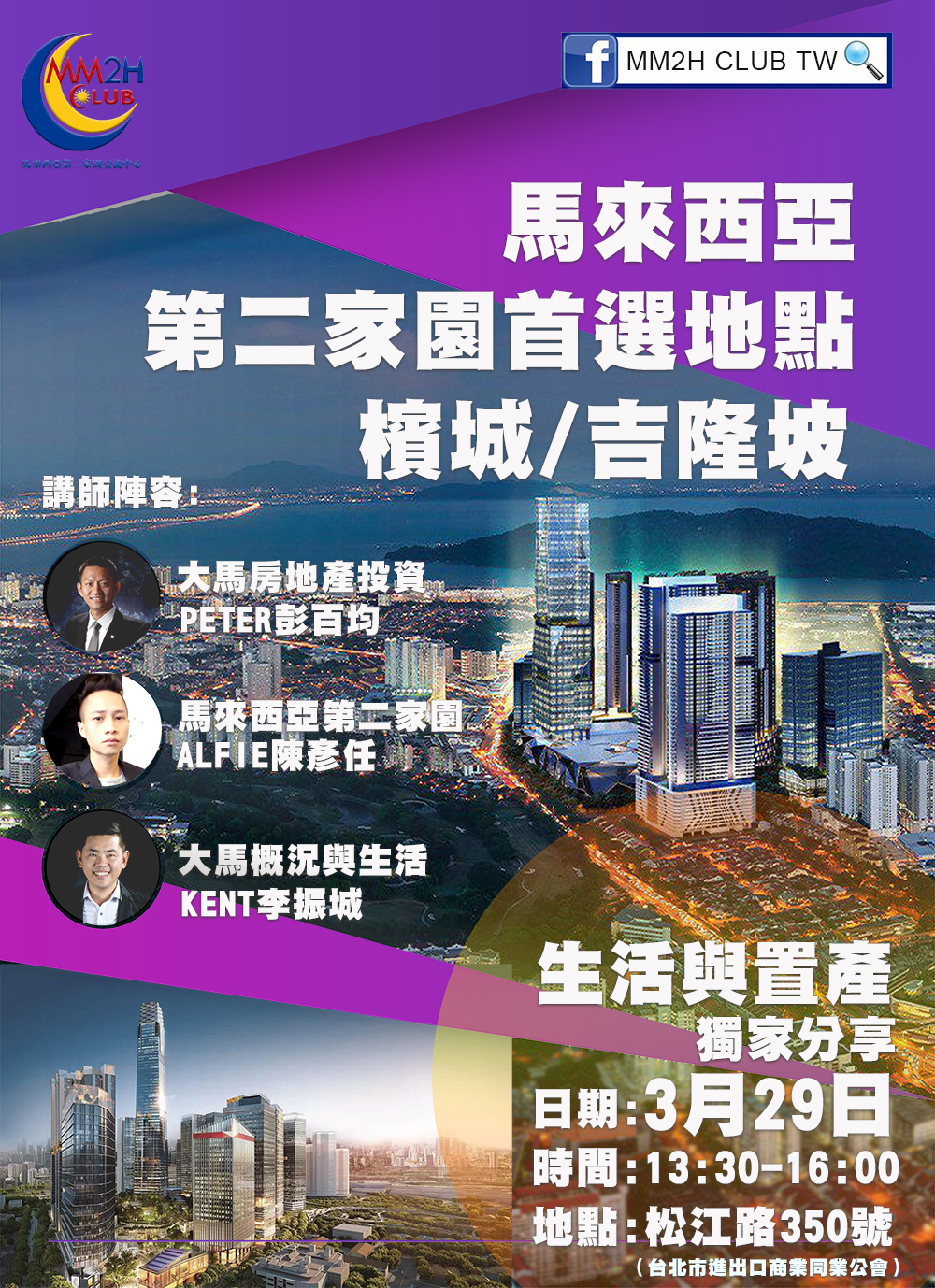 對馬來西亞移居生活、開創生意、投資置產、學童國際教育、退休慢活感到興趣,趕快報名我們3月28日及29號的活動,屆時將與您分享公開分享馬來西亞詳細的資訊~