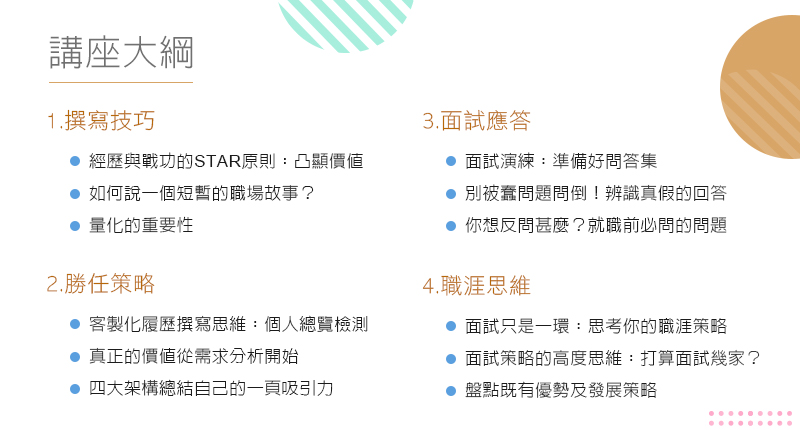 講座結束後,將抽出5名幸運觀眾,將獲得講座講師幫您進行履歷健檢