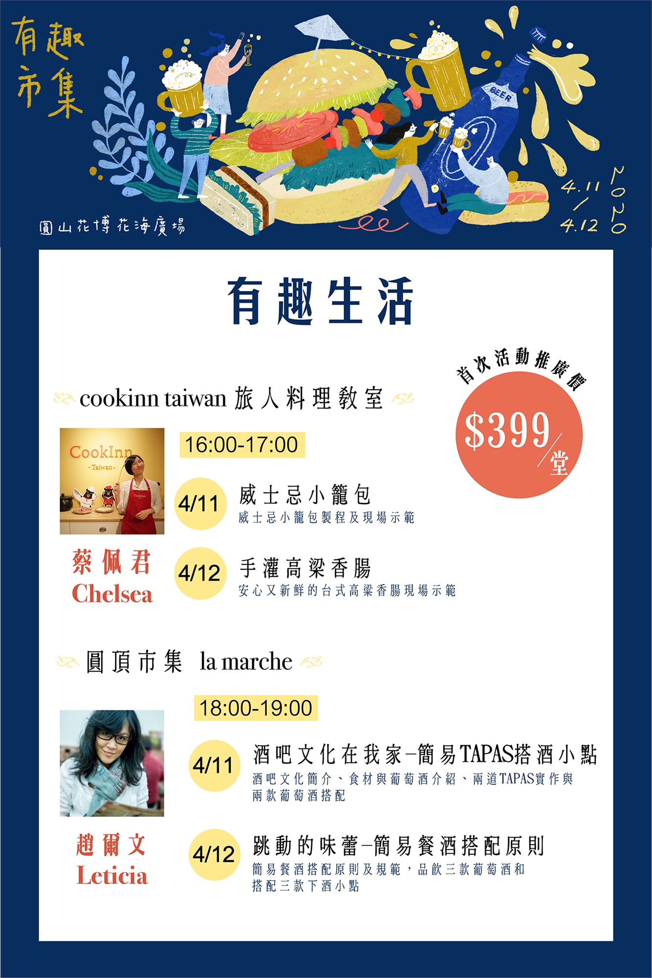 ★ 上課地點: 圓山花博花海廣場(有趣市集內之有趣生活講座專區)
