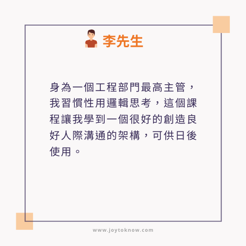 掌握擴展人際關係的技巧,並且能夠化解分歧或衝突、創造美好、和諧的好關係。