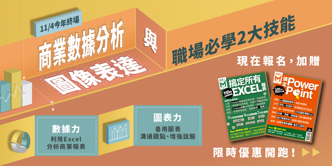1. 限額40組,早鳥報名,一次贈《110招搞定所有EXCEL報表》+《搞定PowerPoint》2本特刊!